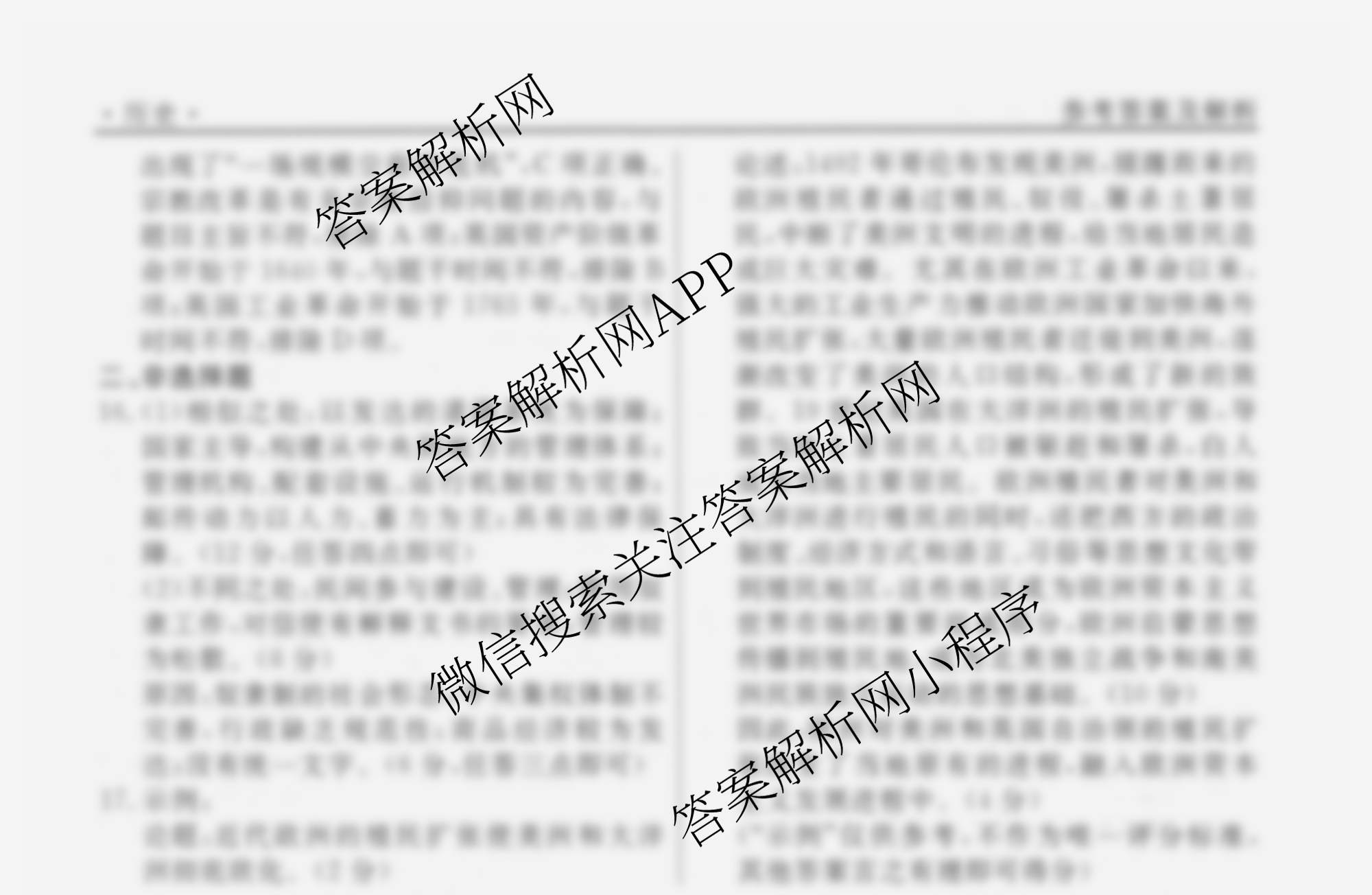 衡水名师卷2024-2025学年度高三一轮复习考点测试卷历史(40分钟空心菱形)(十八)18答案