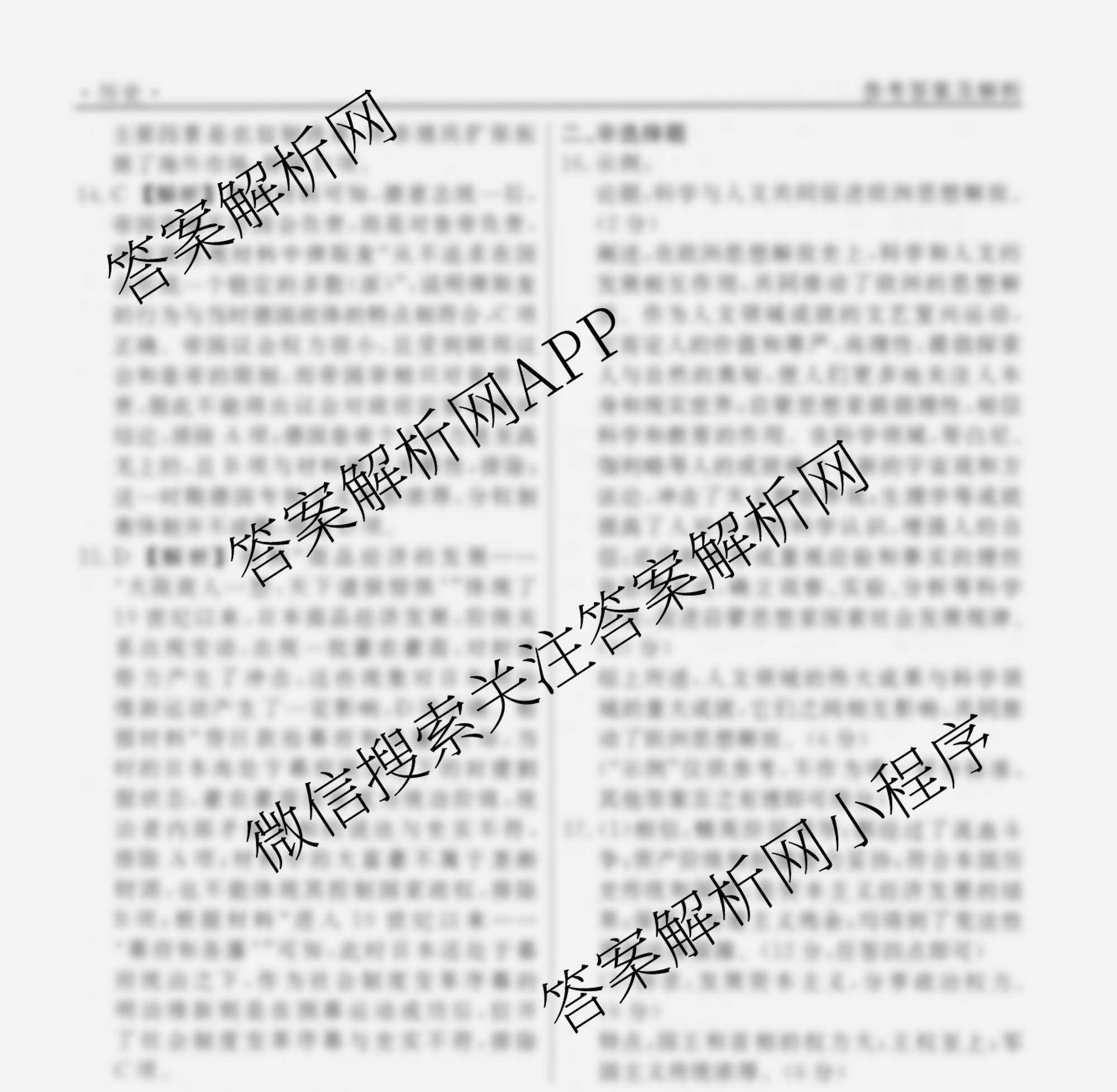 衡水名师卷2024-2025学年度高三一轮复习考点测试卷历史(40分钟空心菱形)(十九)19答案