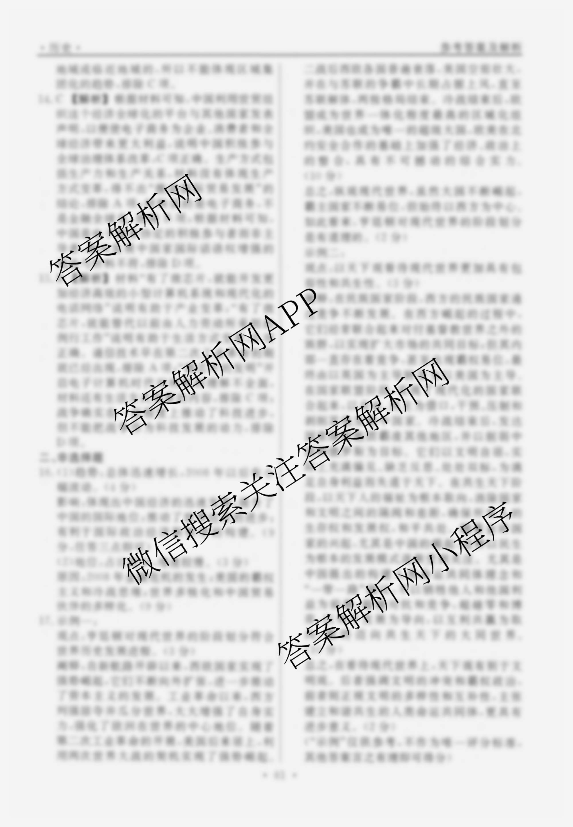 衡水名师卷2024-2025学年度高三一轮复习考点测试卷历史(40分钟空心菱形)(二十七)27答案