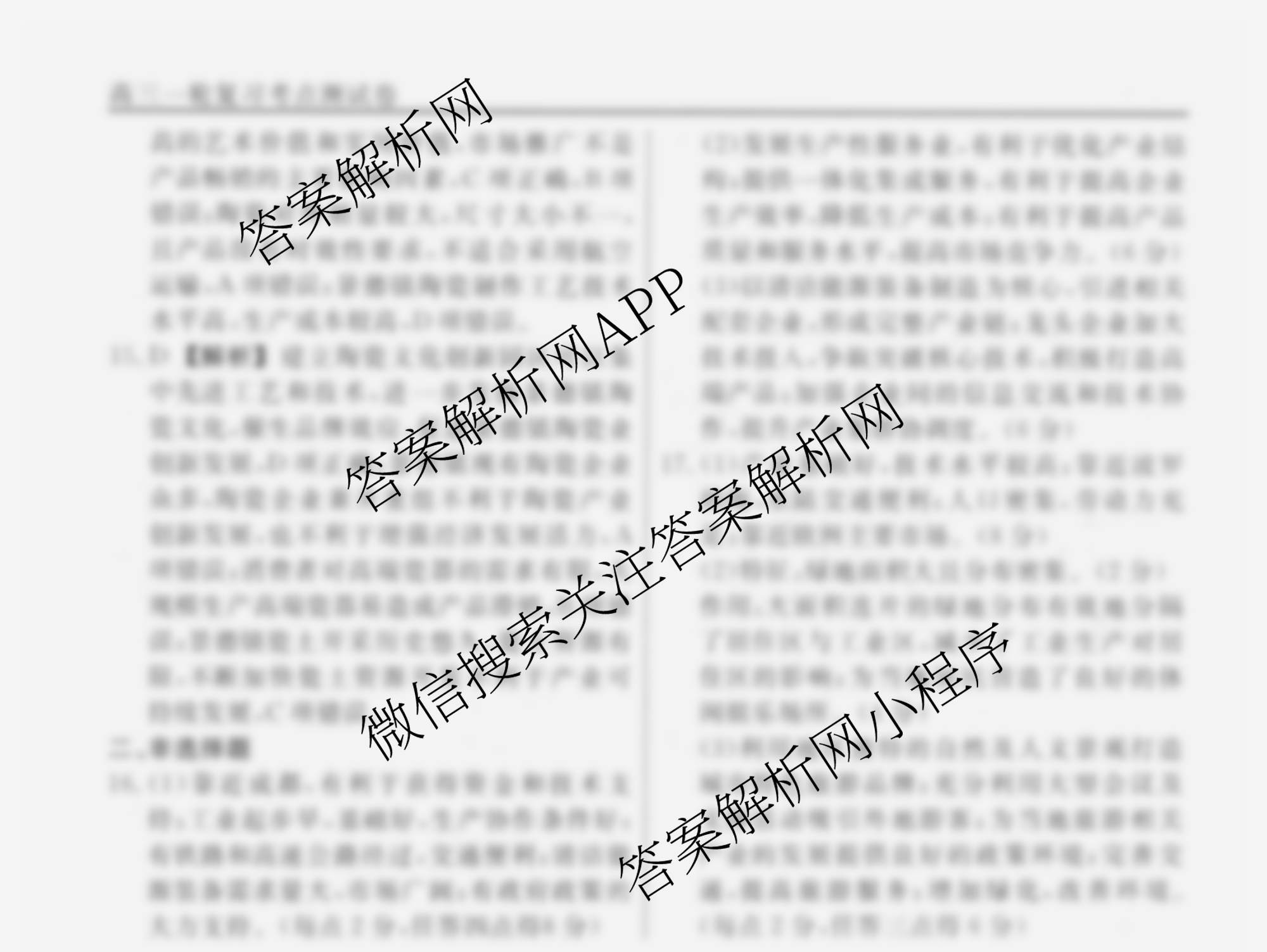 衡水名师卷2024-2025学年度高三一轮复习考点测试卷地理(40分钟空心菱形)(十八)18答案