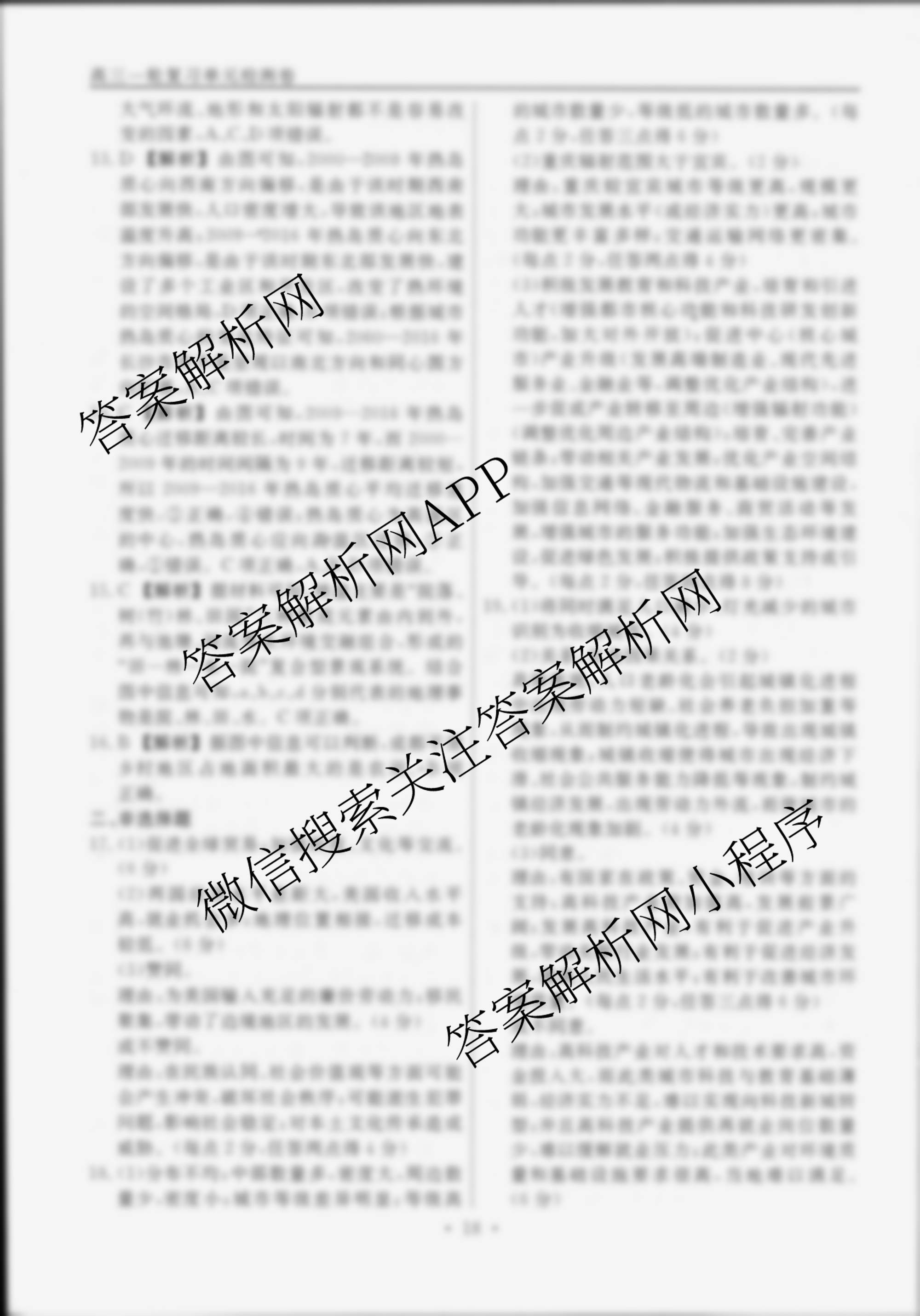 衡水名师卷2024-2025学年度高三一轮复习单元检测卷地理(空心菱形)检测(十)10答案