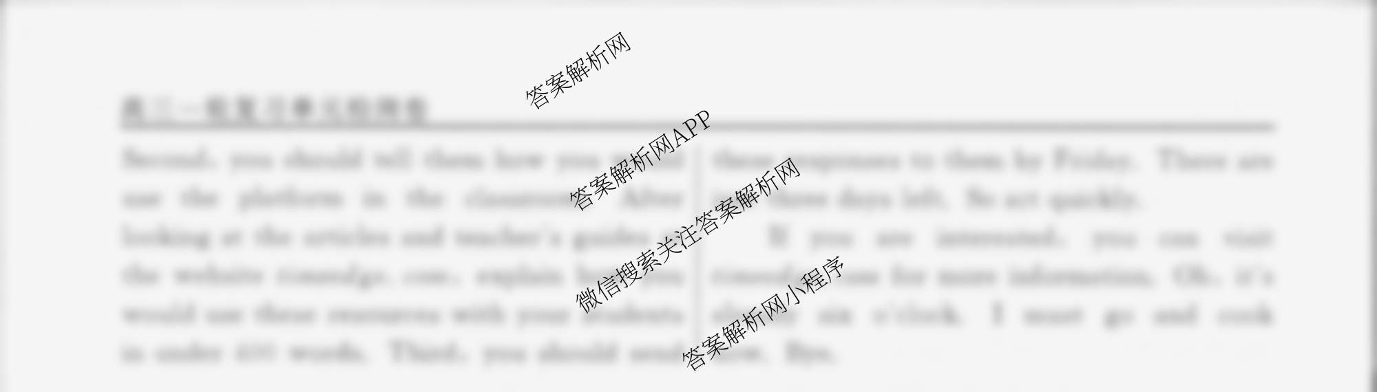 衡水名师卷·2024-2025学年度高三一轮复习单元检测卷·英语(空心菱形)·检测(十九)19答案,目前衡水试卷网已经汇总了衡水名师卷·2024-2025学年度高三一轮复习单元检测卷·英语(空心菱形)·检测(十九)19答案的各科答案和试卷,获取更多衡水名师卷答案解析,请在关注本站。
