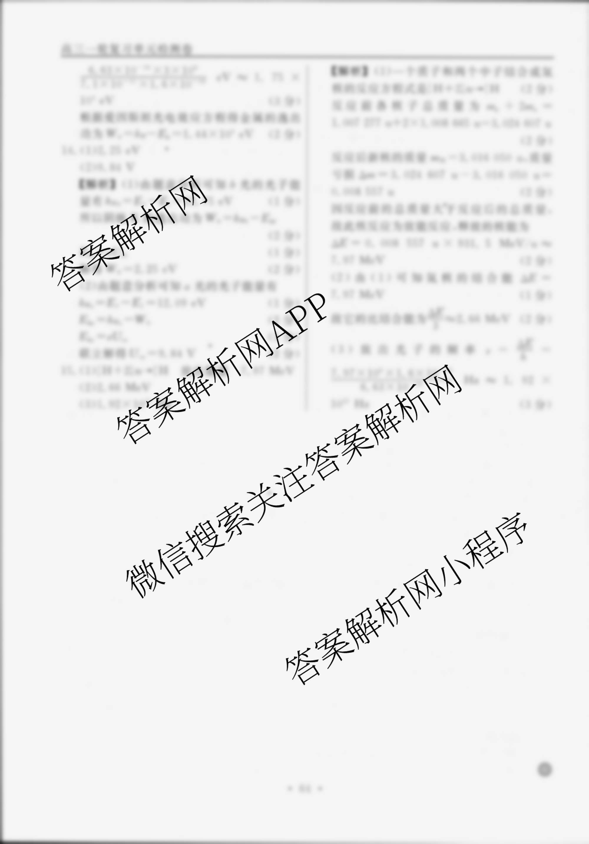 衡水名师卷2024-2025学年度高三一轮复习单元检测卷物理(实心圆)检测(二十)20答案
