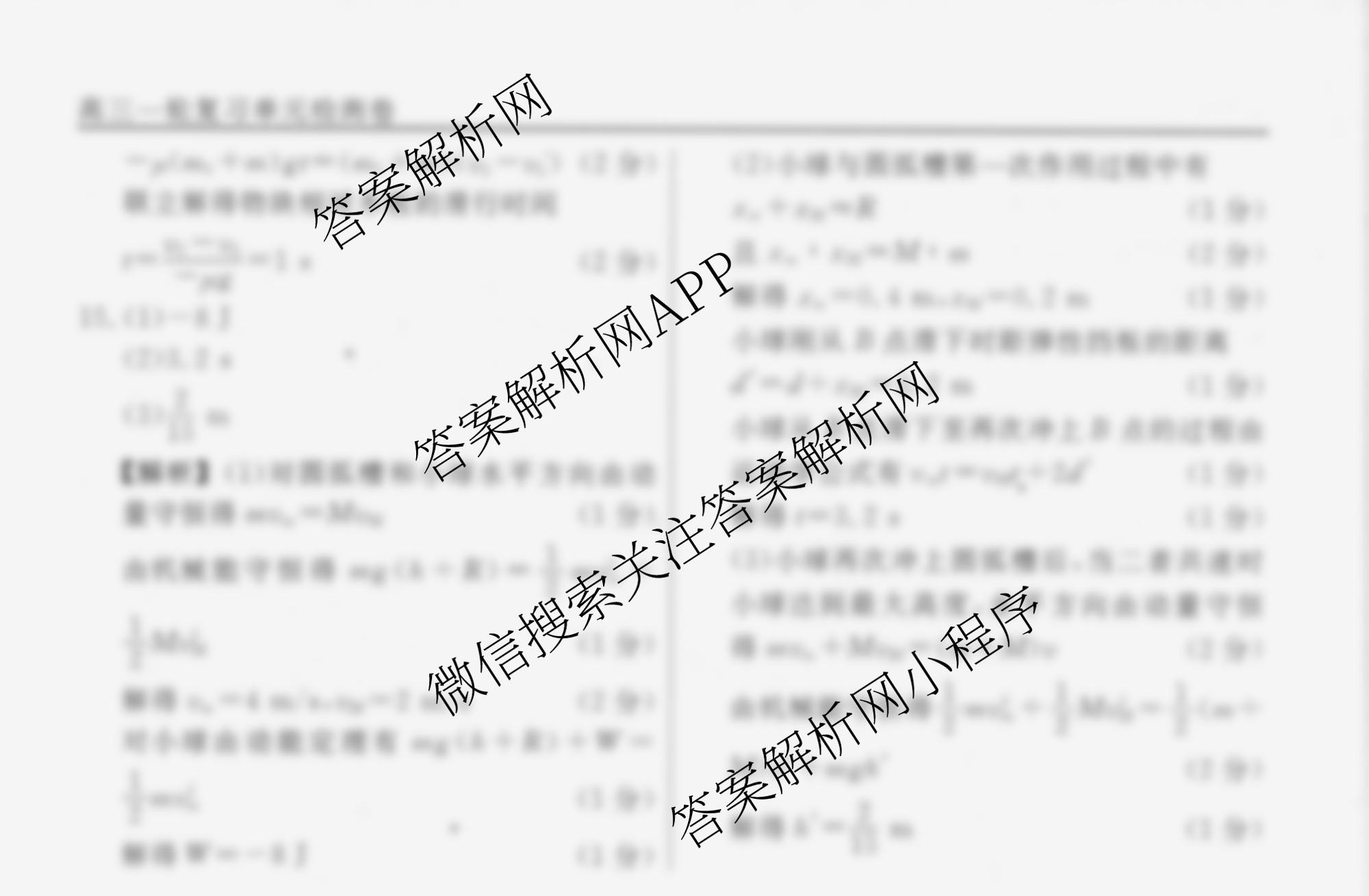 衡水名师卷2024-2025学年度高三一轮复习单元检测卷物理(实心圆)检测(八)8答案
