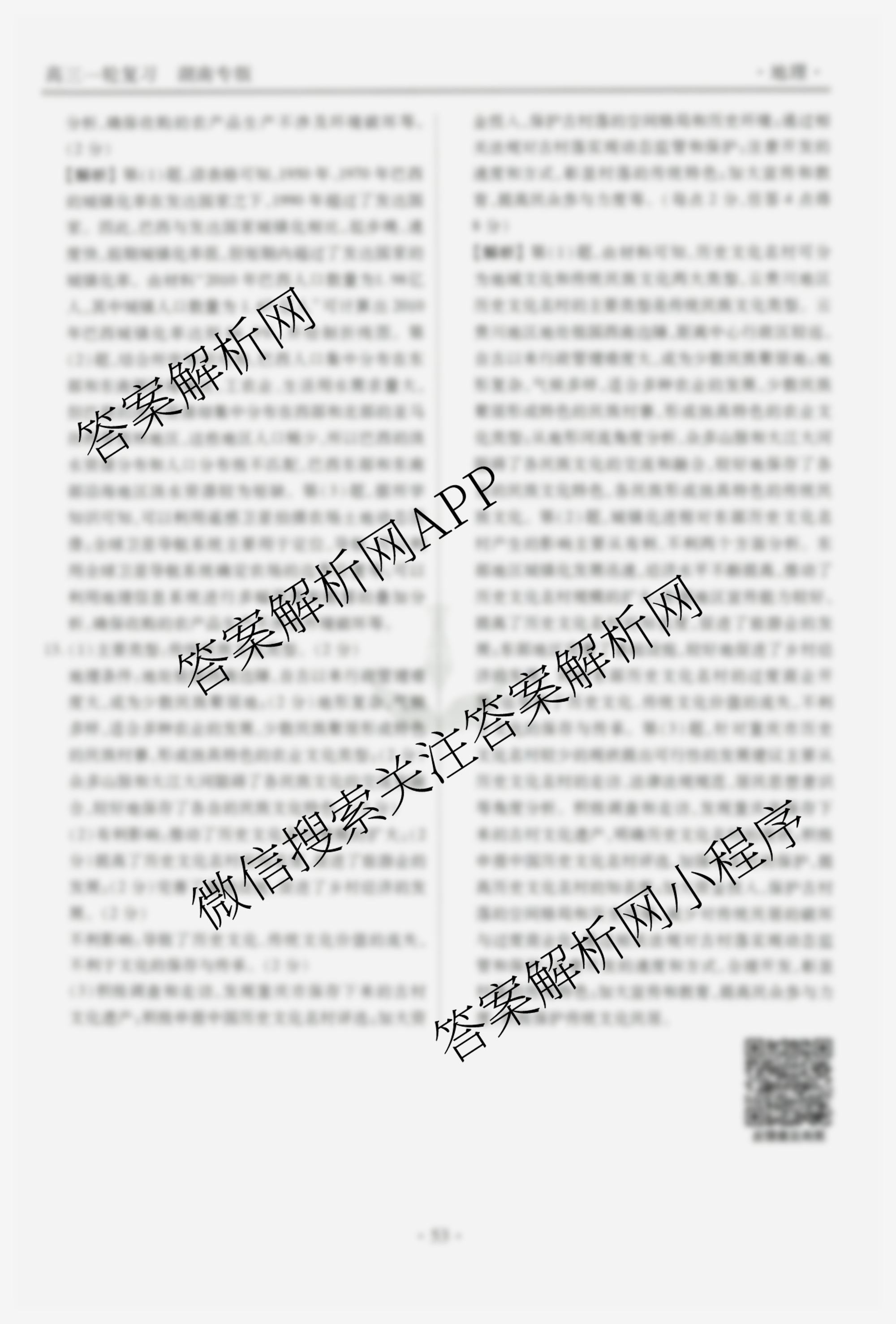 2024~2025高三(衡水金卷先享题)一轮复习40分钟周测卷地理(湖南专版)(十四)14答案