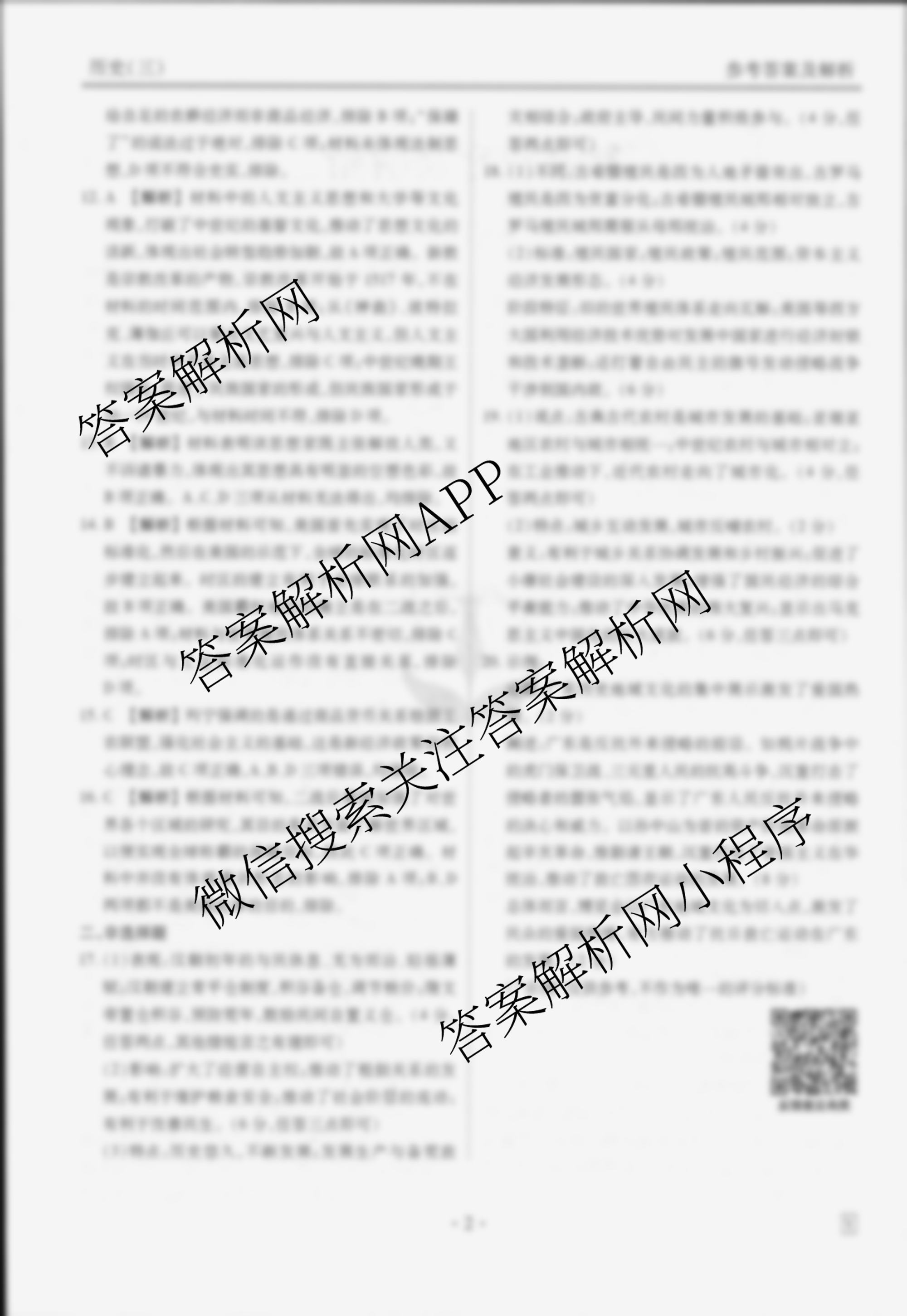 - (衡水金卷先享题)·调研卷 2025年普通高中学业水平选择性考试模拟试题(三)3历史(AH)答案