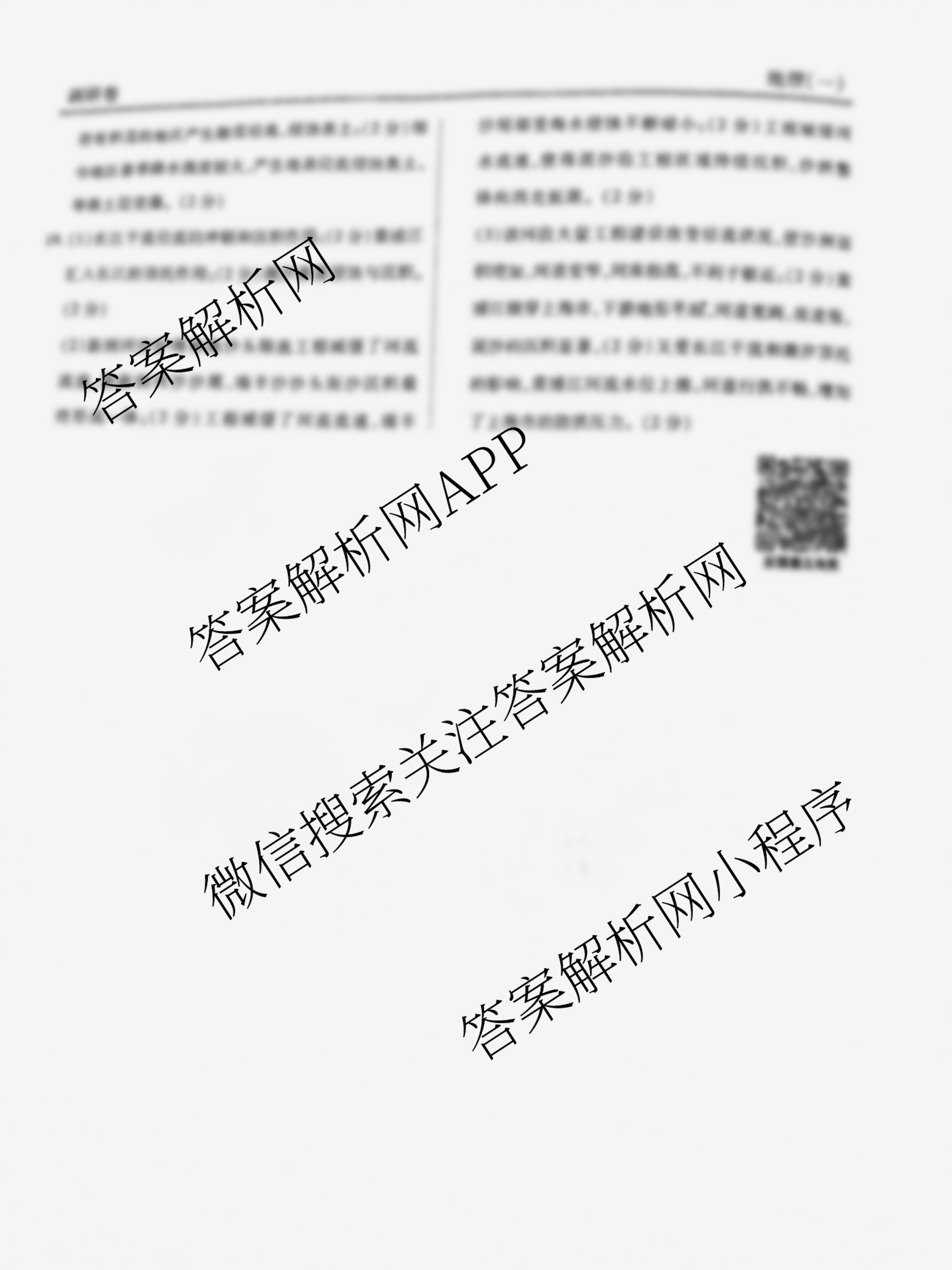 - (衡水金卷先享题)调研卷 2025年普通高中学业水平选择性考试模拟试题 地理(S)(一)1答案