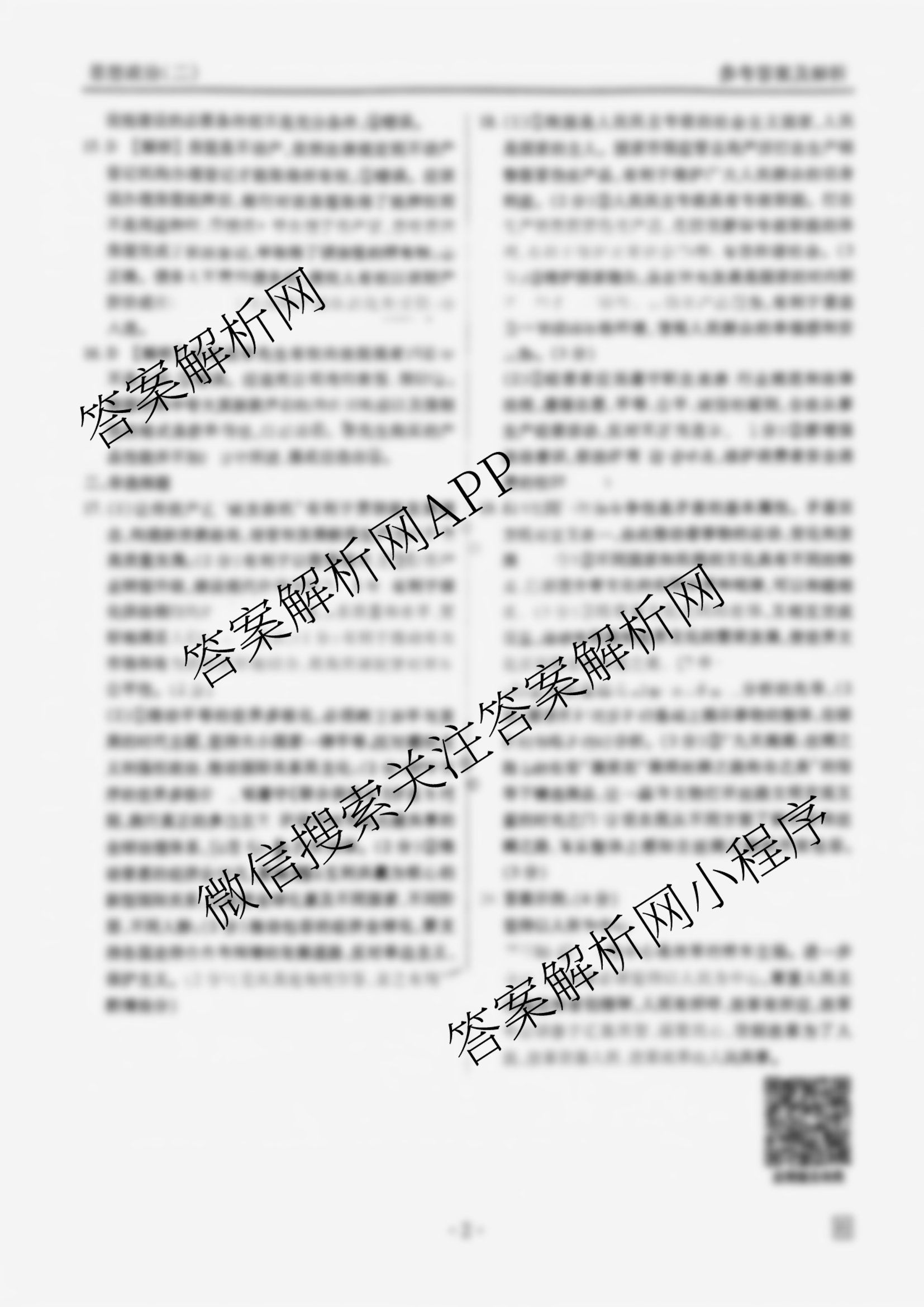 - (衡水金卷先享题)调研卷 2025年普通高中学业水平选择性考试模拟试题(二)2政治(HJ)答案