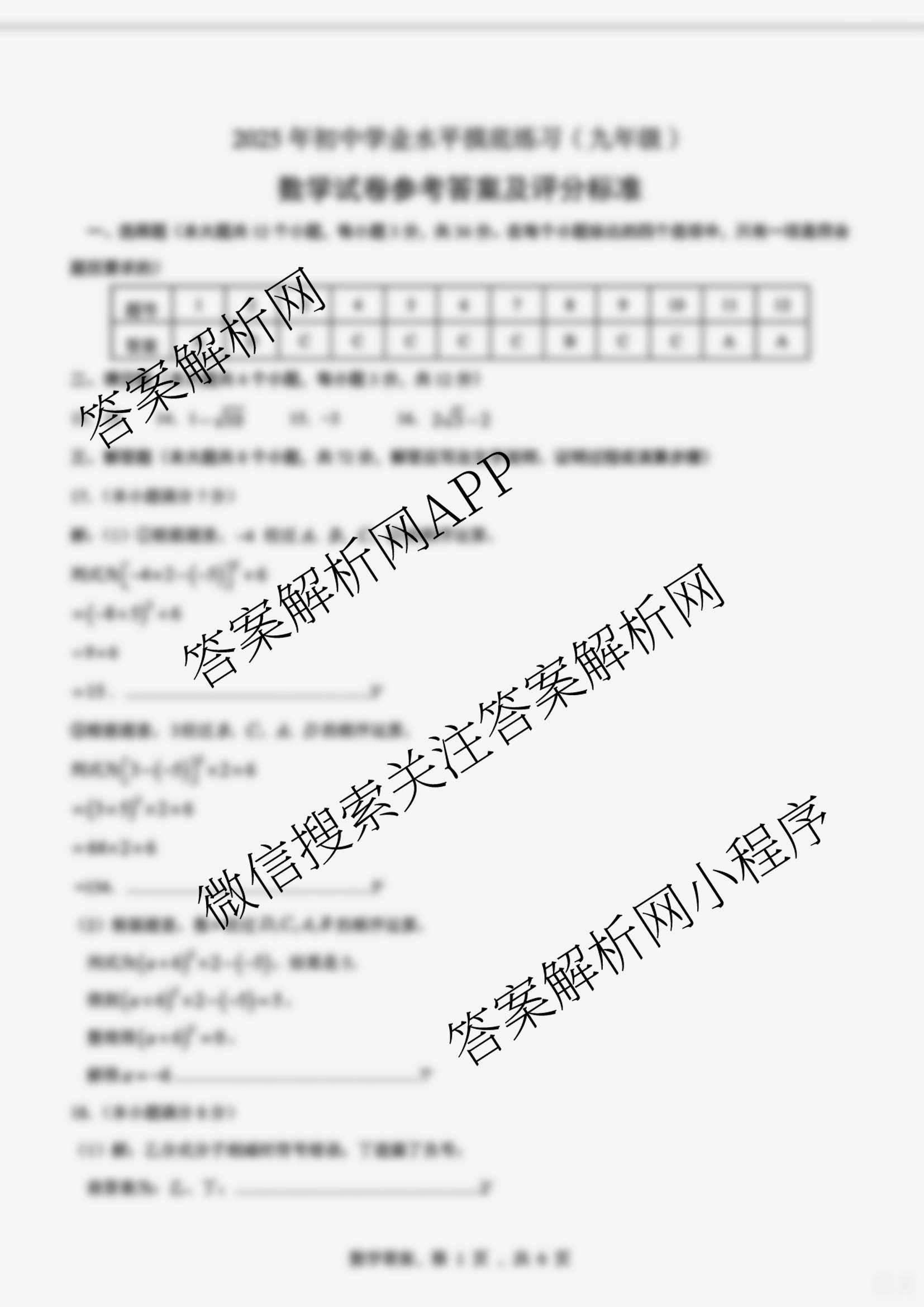 河北省2025年初中学业水平摸底练习(九年级)数学答案,目前衡水试卷网已经汇总了河北省2025年初中学业水平摸底练习(九年级)数学答案的各科答案和试卷,获取更多地方模拟答案解析,请在关注本站。