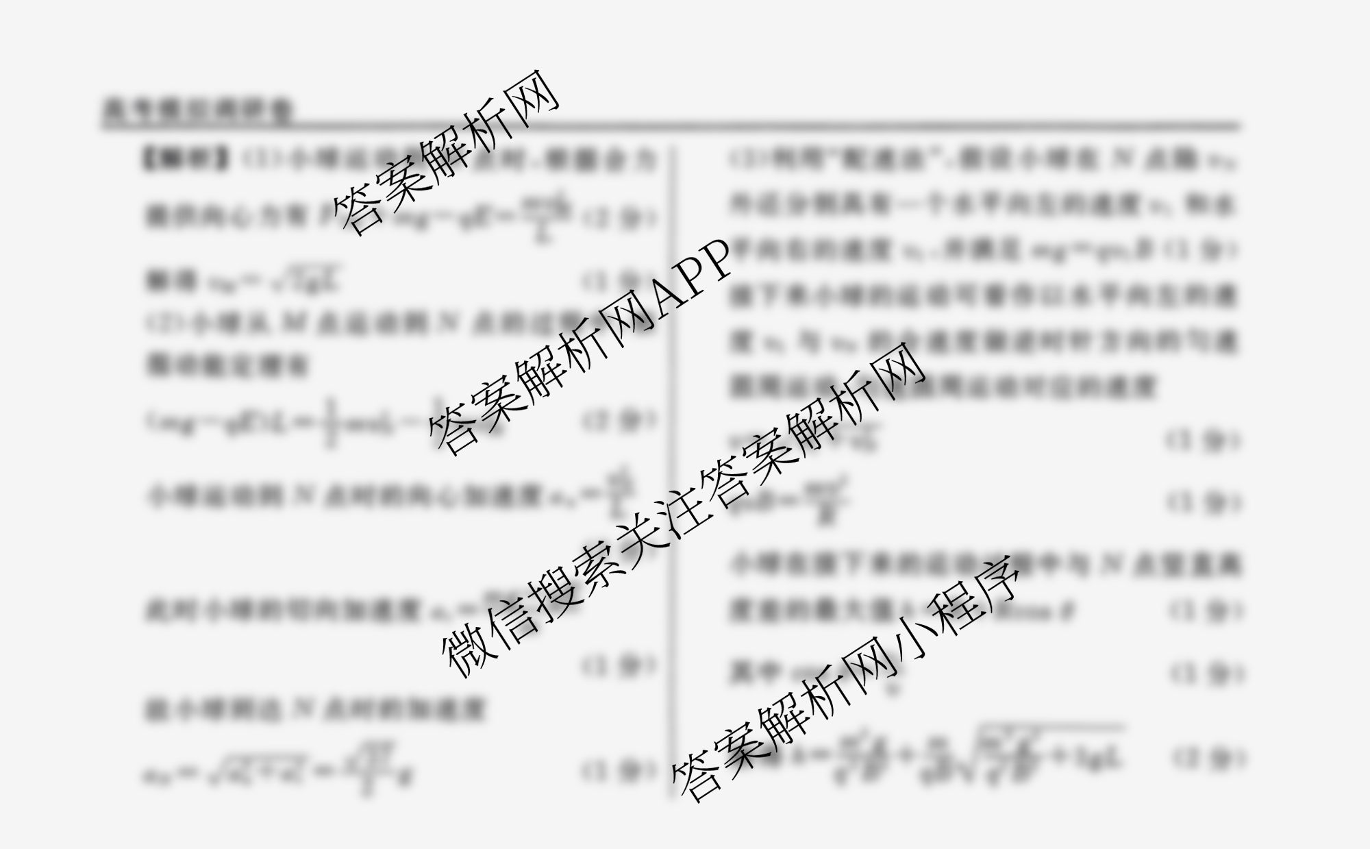 衡水名师卷高考模拟调研卷 2025年普通高中学业水平选择性考试模拟(三)3物理(菱形点)答案