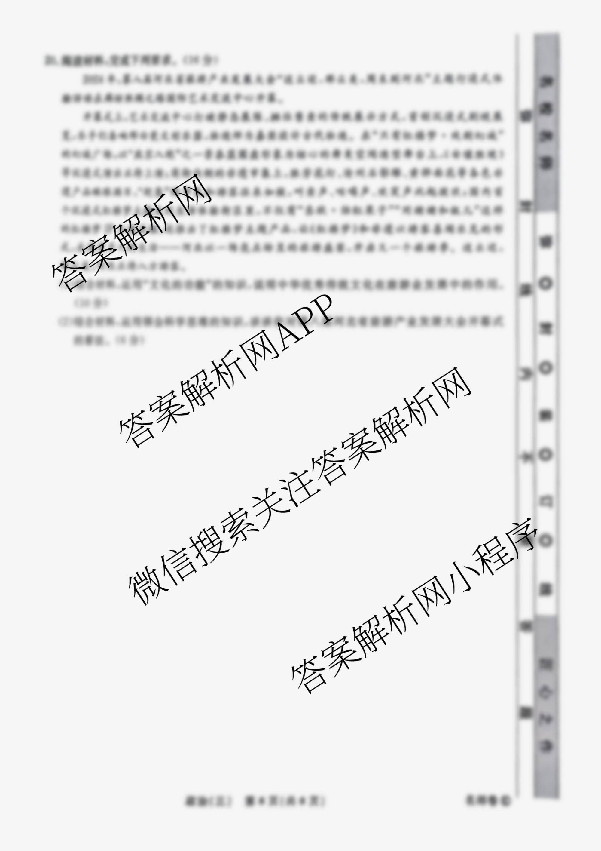 衡水名师卷高考模拟调研卷 2025年普通高等学校招生全国统一考试模拟(三)3政治(◎)试题