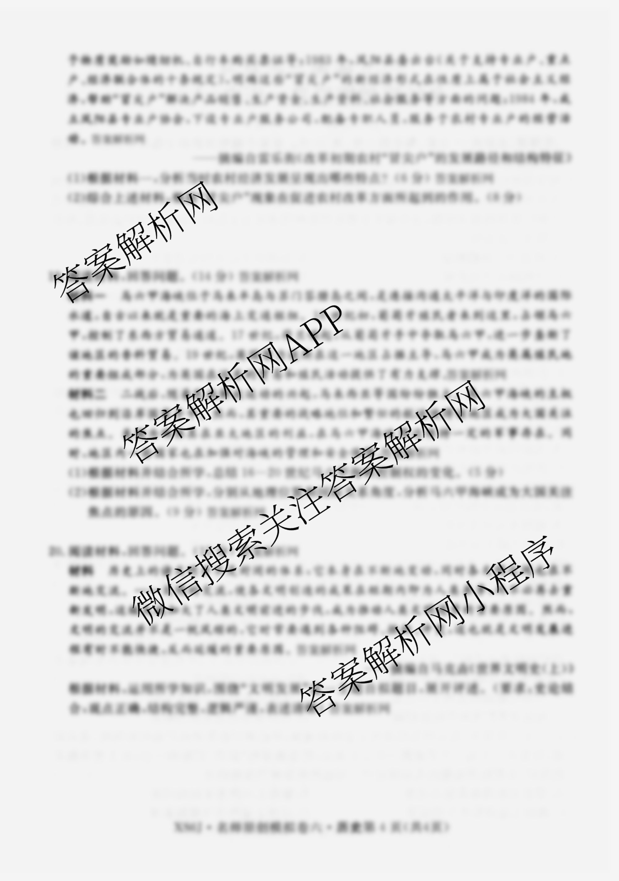 - [高三]2026届[总复习名师原创模拟](六)6历史(XS6)答案
