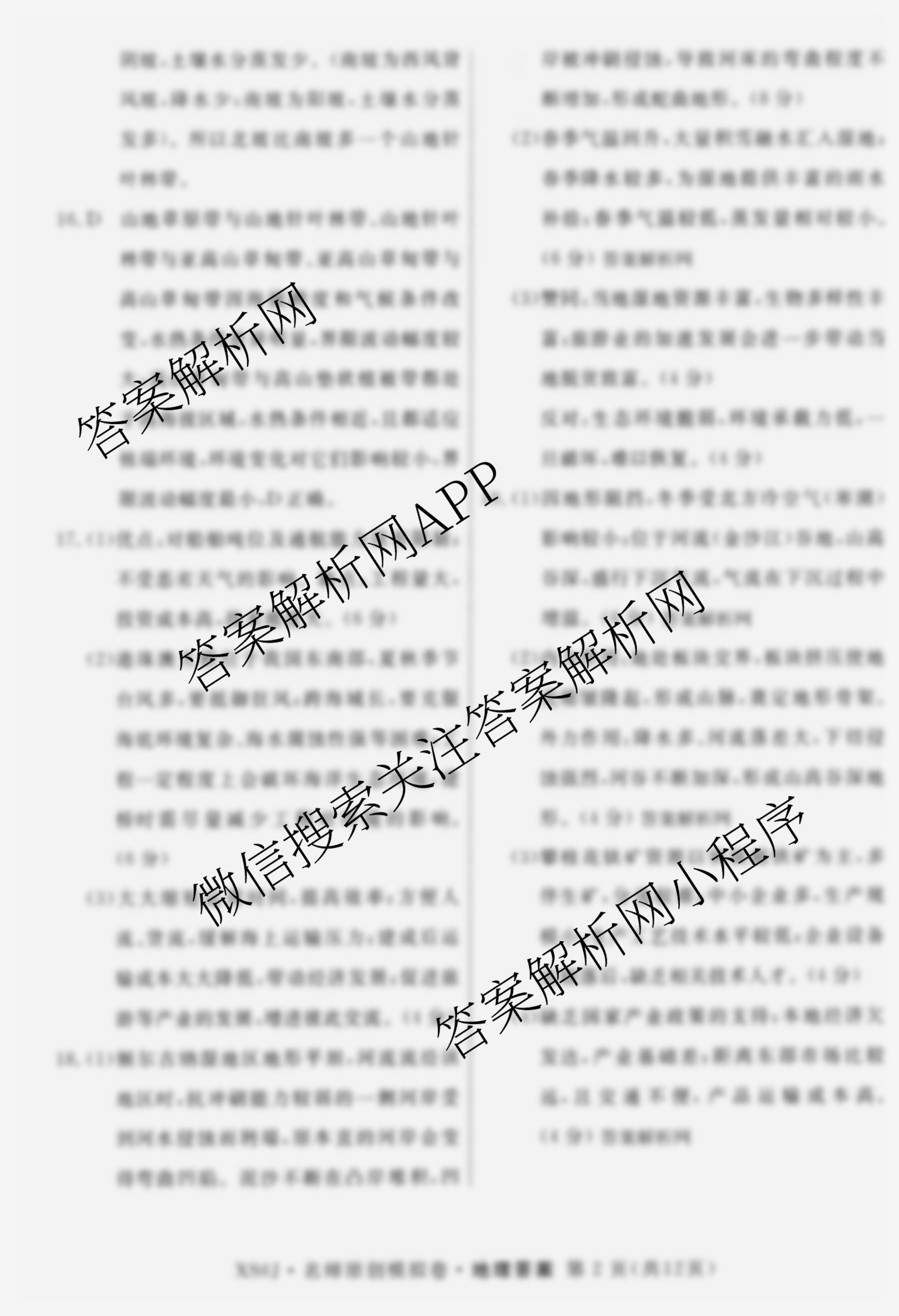 - 2026届(高三总复习名师原创模拟)(一)1地理(XS6J)答案
