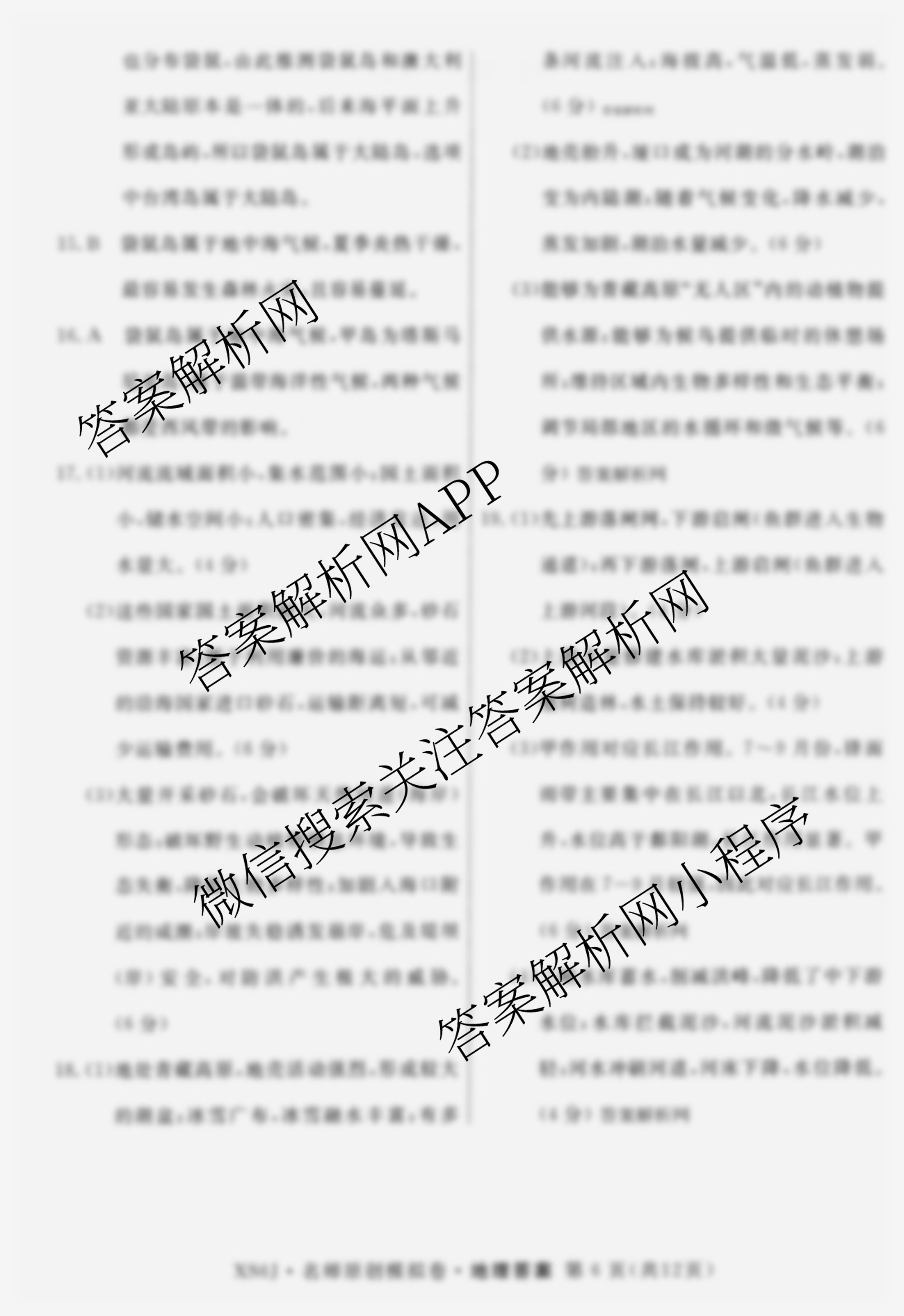 - 2026届([高三]总复习名师原创模拟)(三)3地理(XS6J)答案