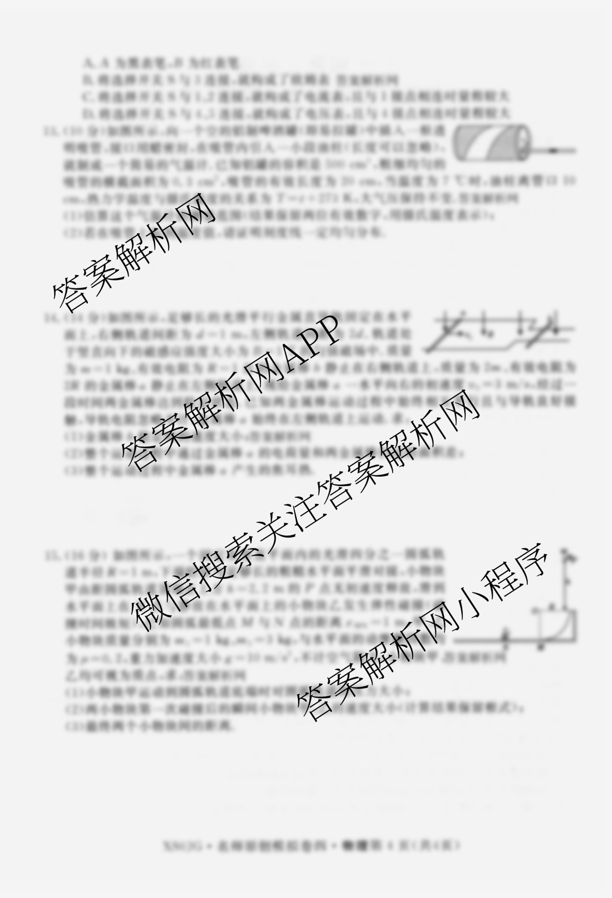 2026届高三总复习·名师原创模拟(四)4物理(XS6JG)试题,目前衡水试卷网已经汇总了2026届高三总复习·名师原创模拟(四)4物理(XS6JG)试题的各科答案和试卷,获取更多高三总复习·名师原创模拟答案解析,请在关注本站。