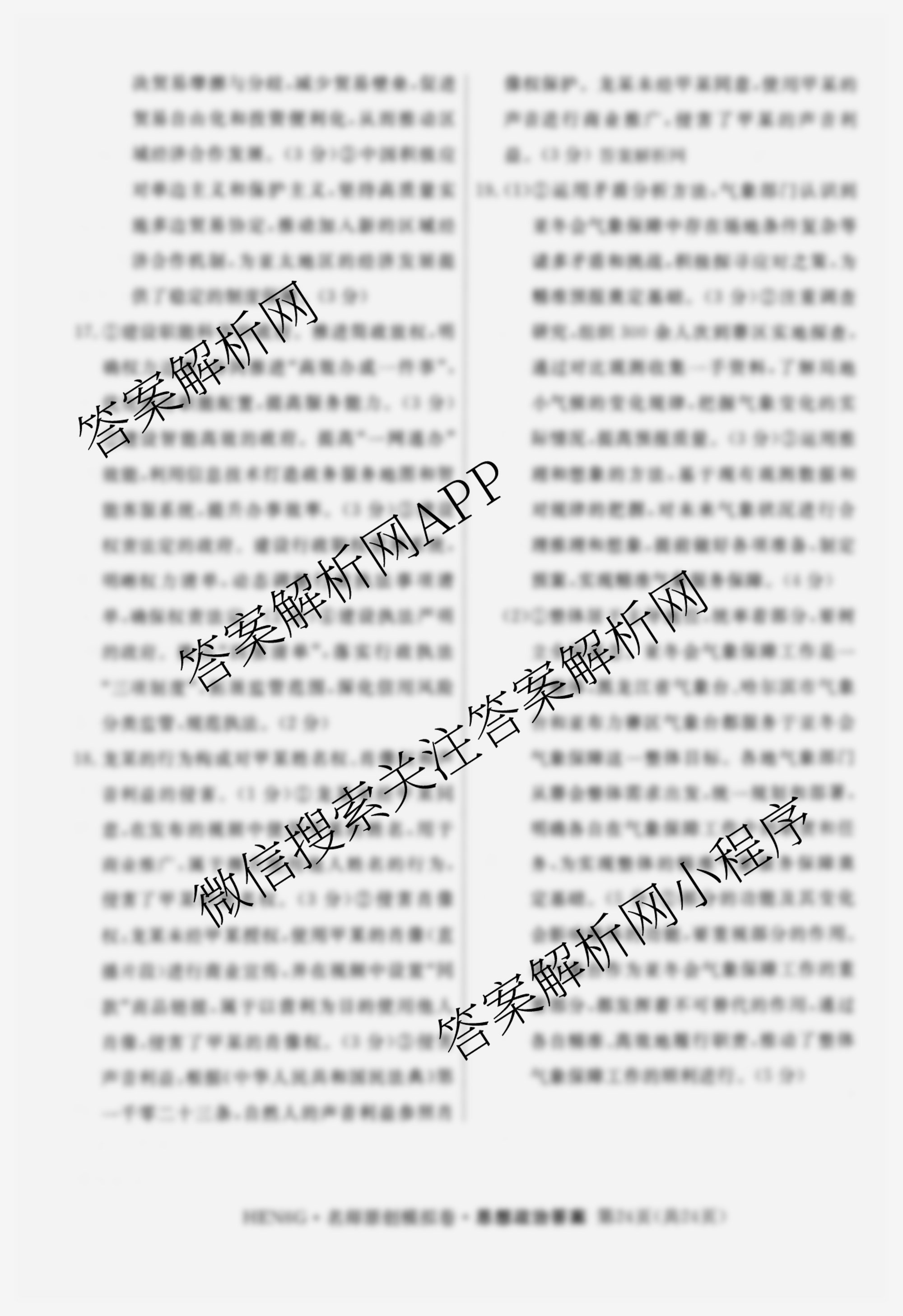 - [高三]2026届(总复习名师原创模拟)(六)6政治(新S6J)答案