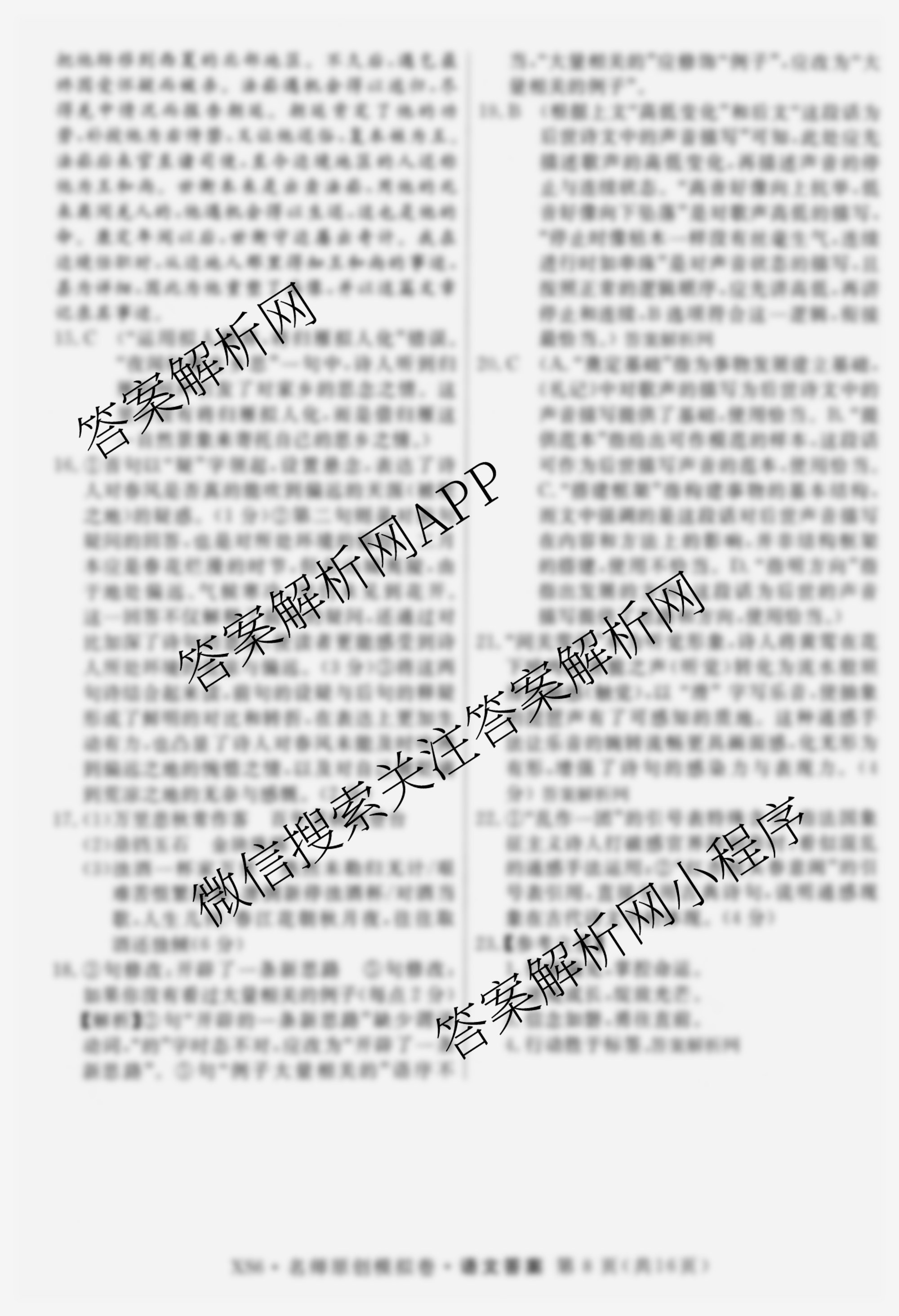 [高三]2026届总复习名师原创模拟(三)3语文(XS6G)答案