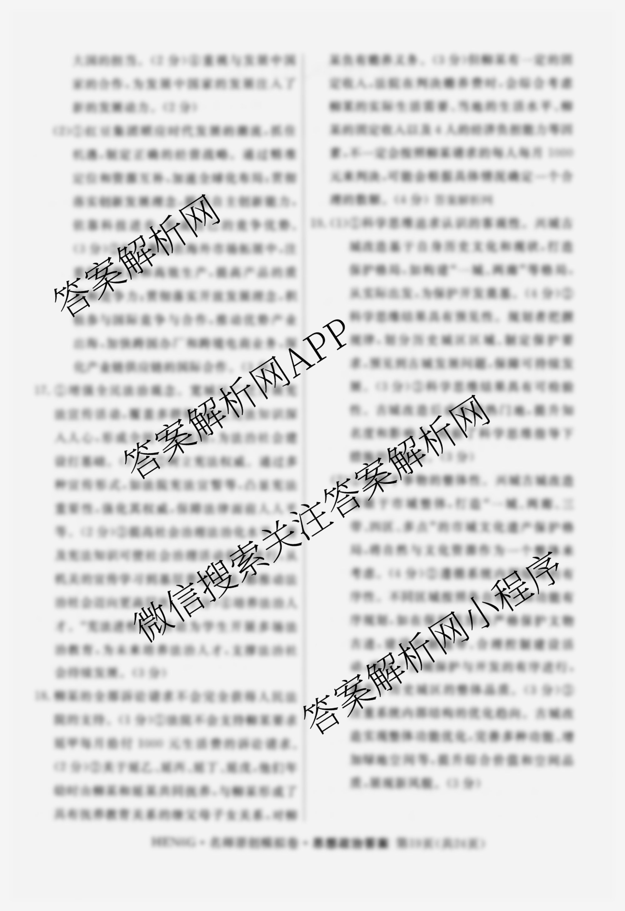 - 2026届([高三]总复习·名师原创模拟)(五)5政治(HEN6G)答案