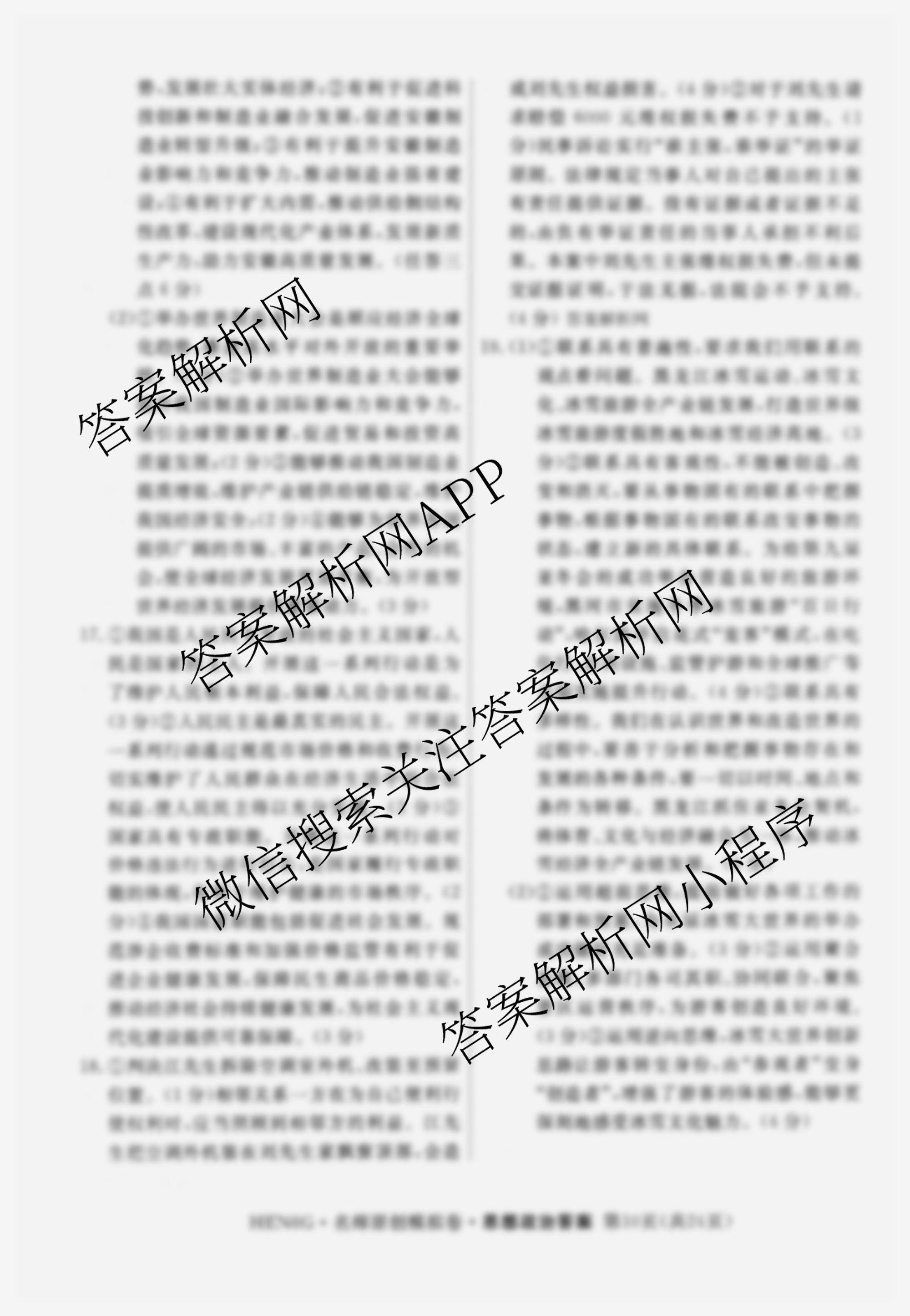 - [高三]2026届(总复习名师原创模拟)(三)3政治(新S6J)答案