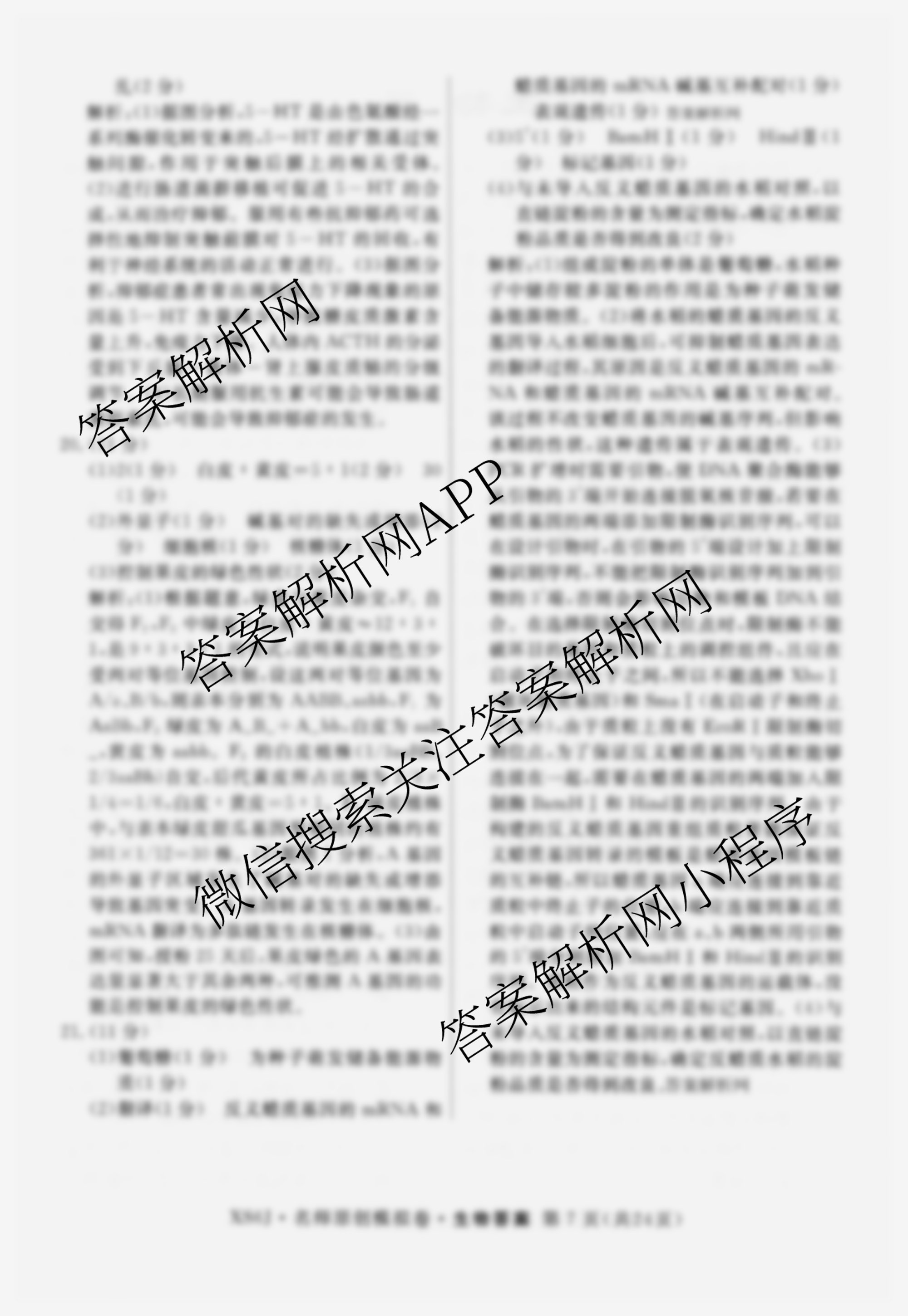 2026届([高三]总复习·名师原创模拟)(二)2生物(XS6JG)答案