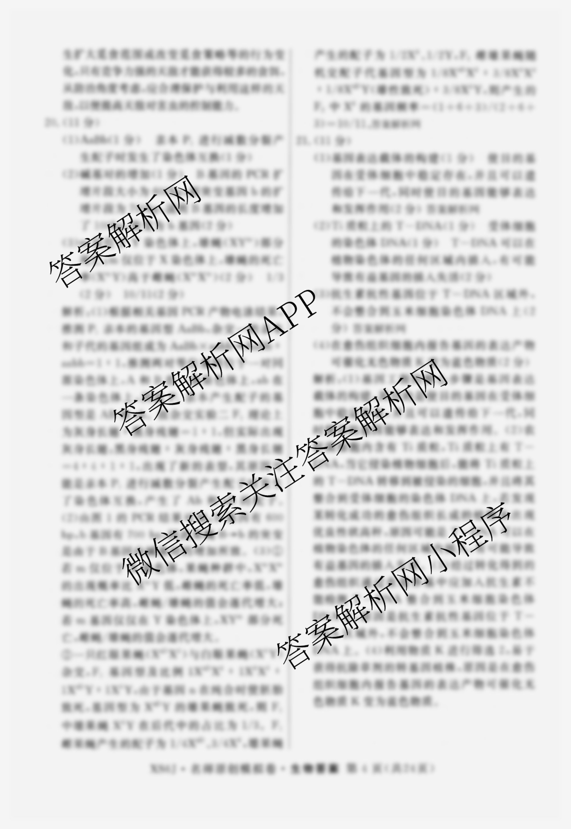 - [高三]2026届[总复习名师原创模拟](一)1生物(GDX6)答案