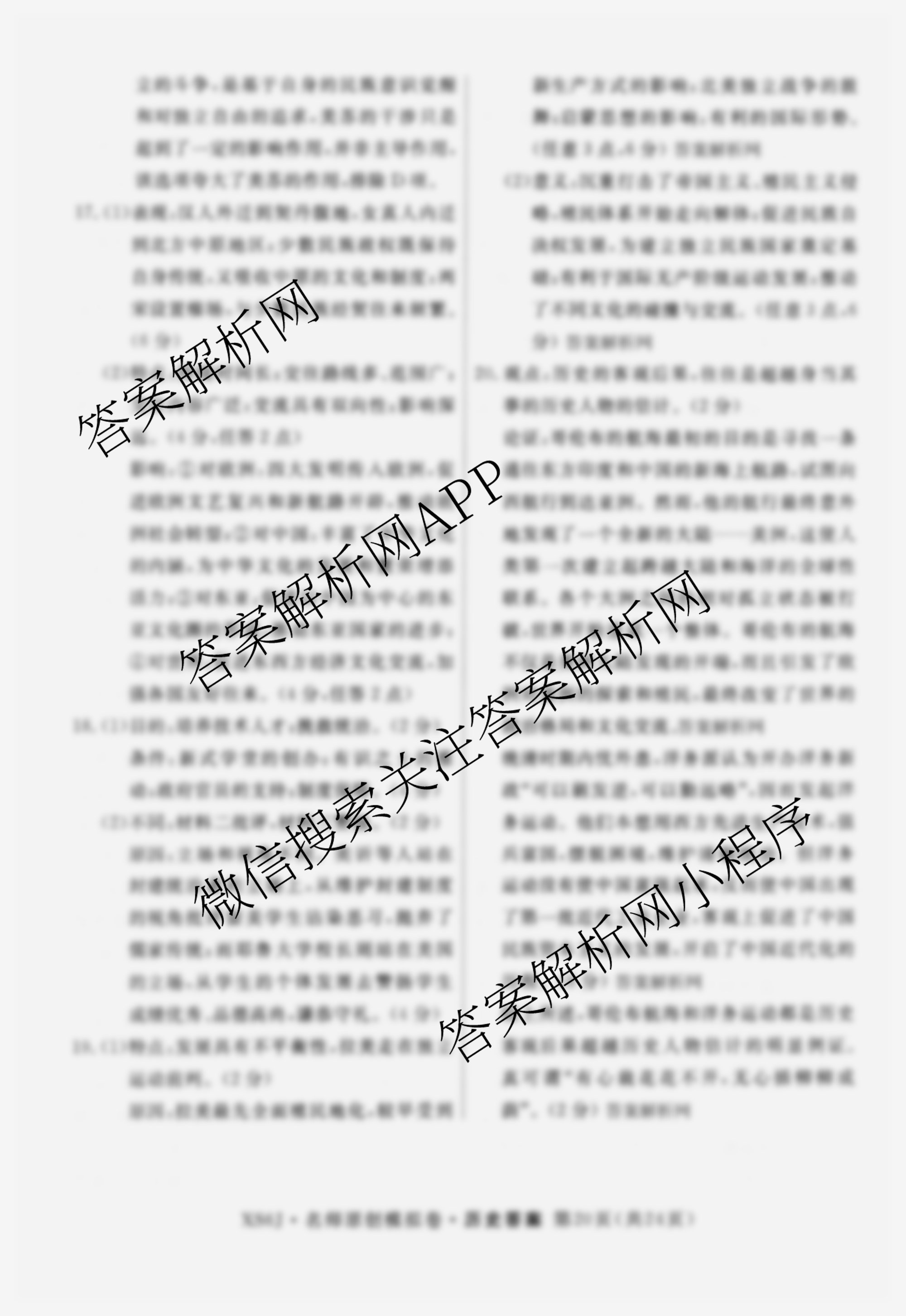 - 2026届([高三]总复习名师原创模拟)(五)5历史(XS6J)答案