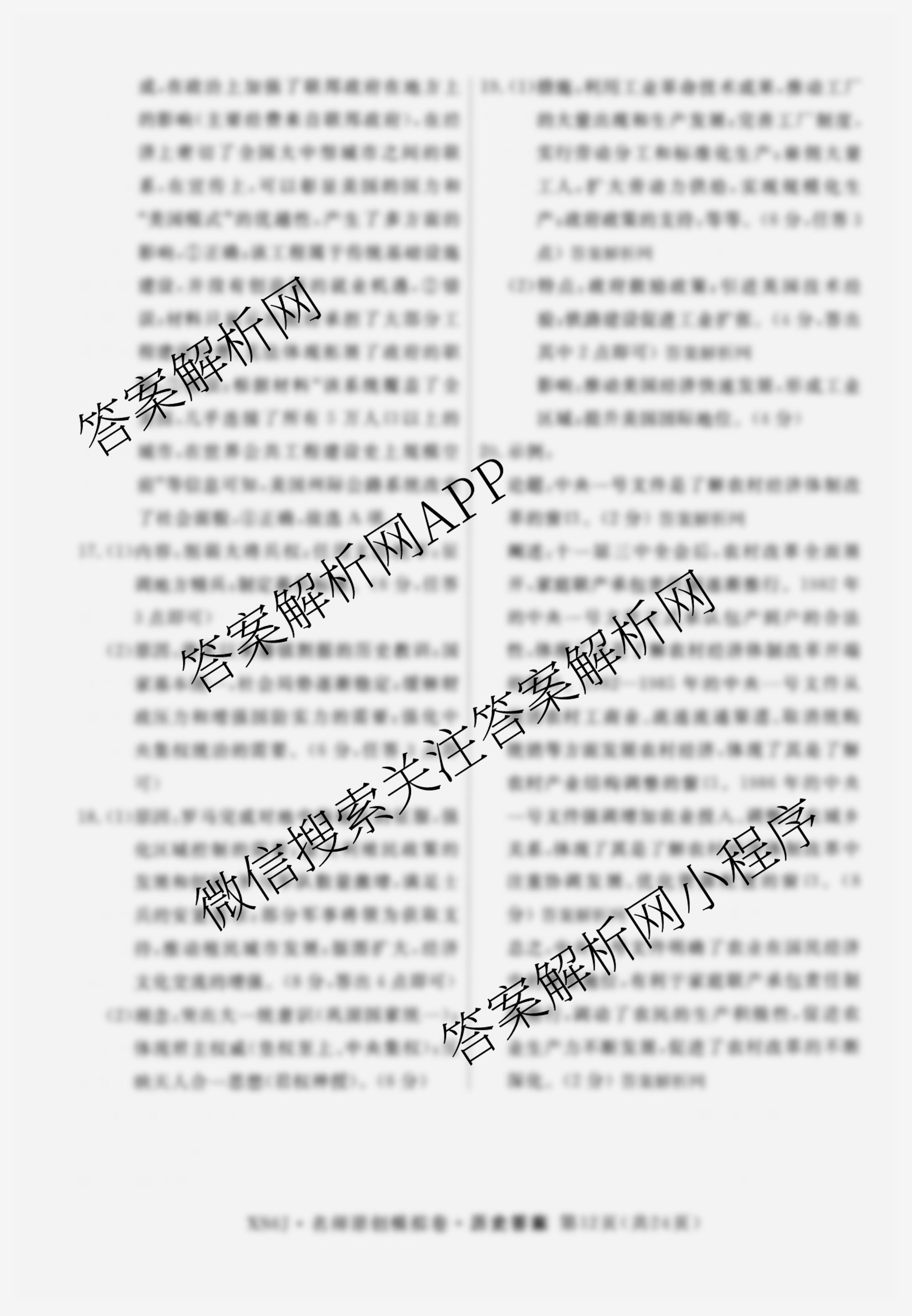 - (高三)2026届(总复习名师原创模拟)(三)3历史(XS6)答案