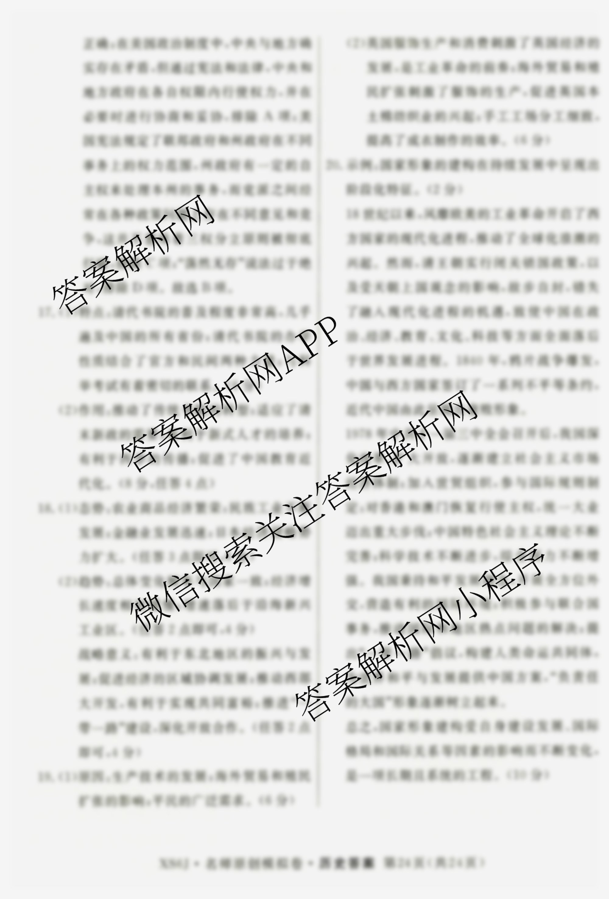 - 2026届[[高三]总复习名师原创模拟](十二)12历史(XS6)答案