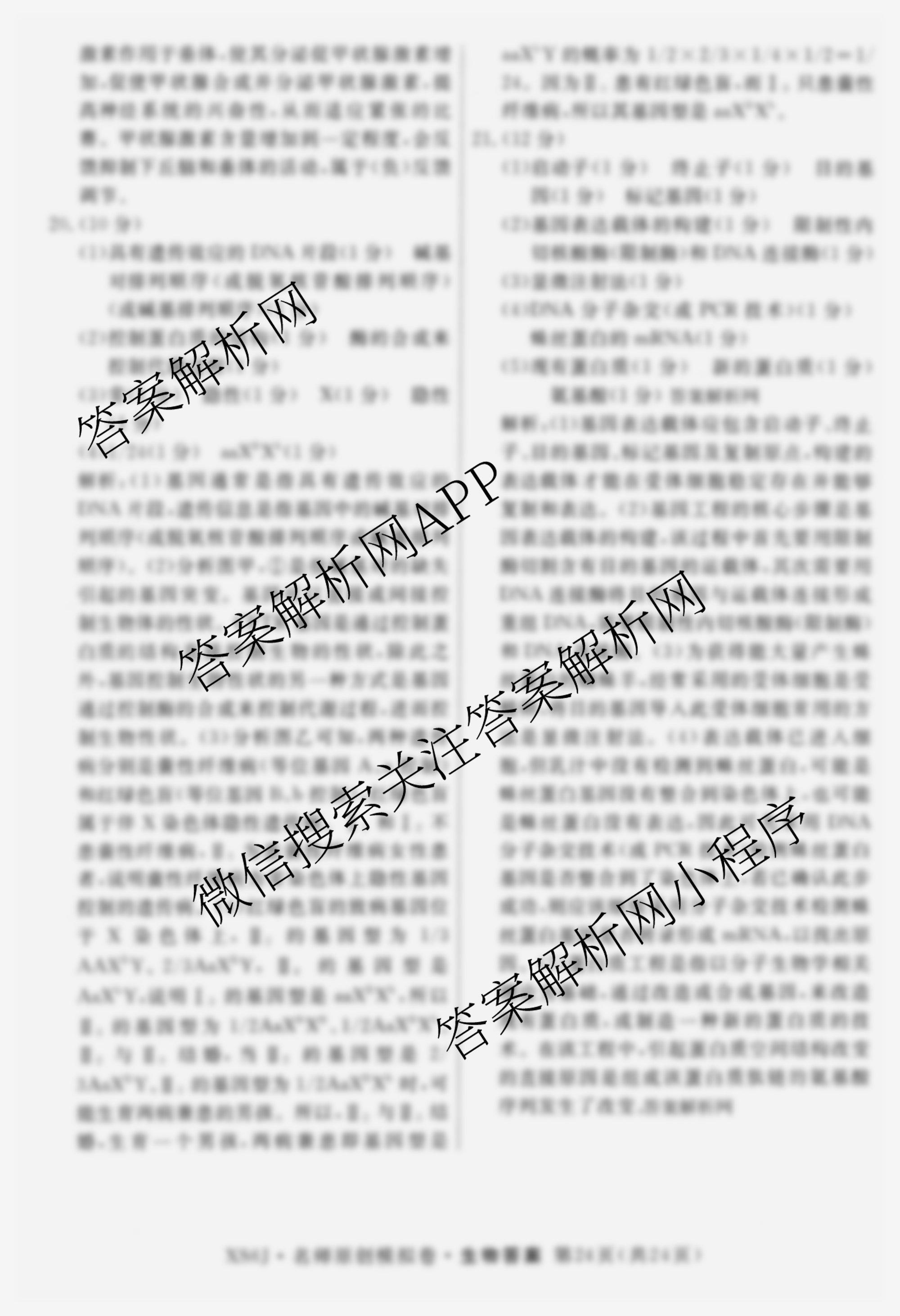 - 2026届((高三)总复习·名师原创模拟)(十二)12生物(XS6JG)答案