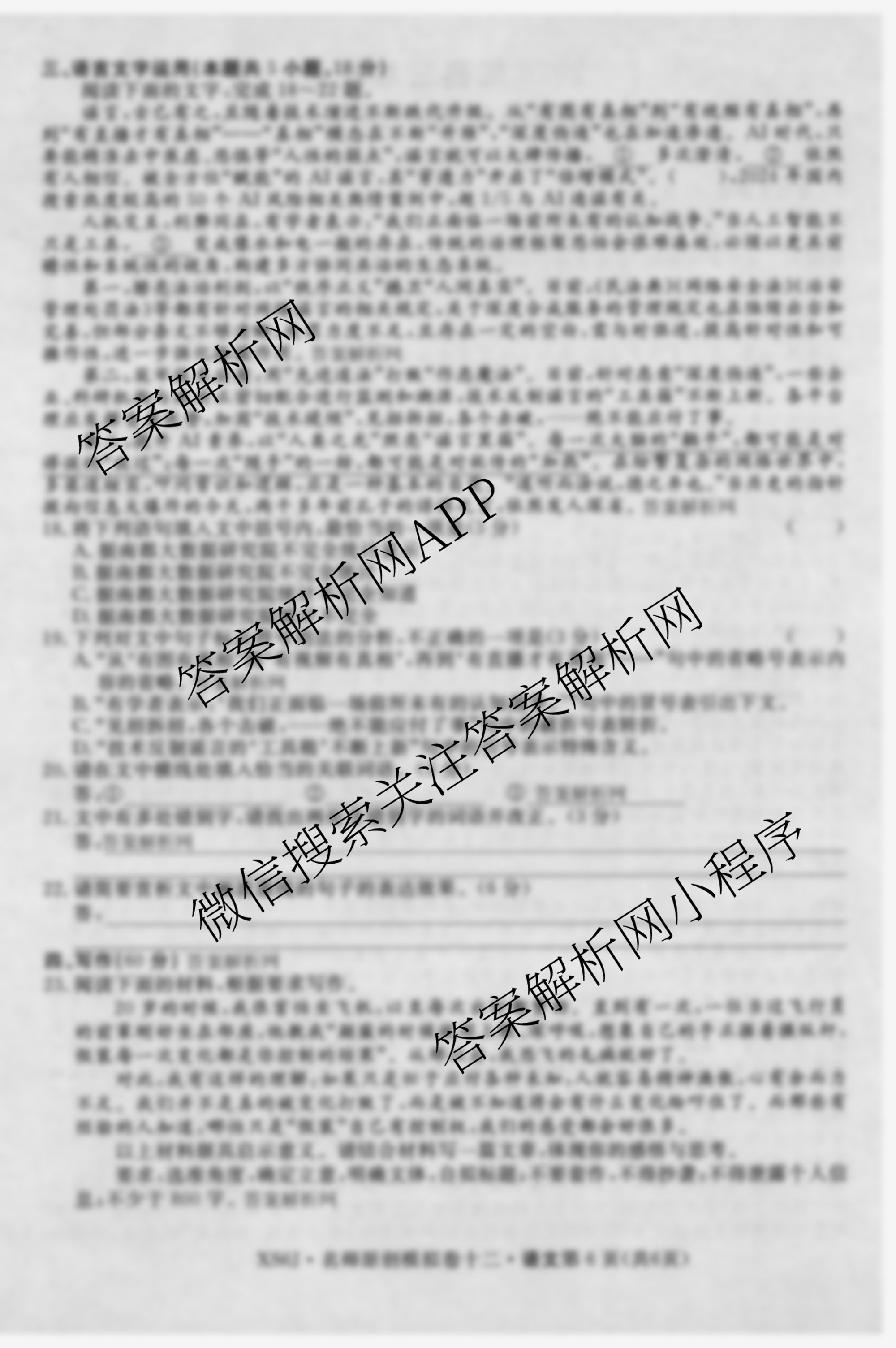 2026届高三总复习·名师原创模拟(十二)12语文(XS6G)试题,目前衡水试卷网已经汇总了2026届高三总复习·名师原创模拟(十二)12语文(XS6G)试题的各科答案和试卷,获取更多高三总复习·名师原创模拟答案解析,请在关注本站。