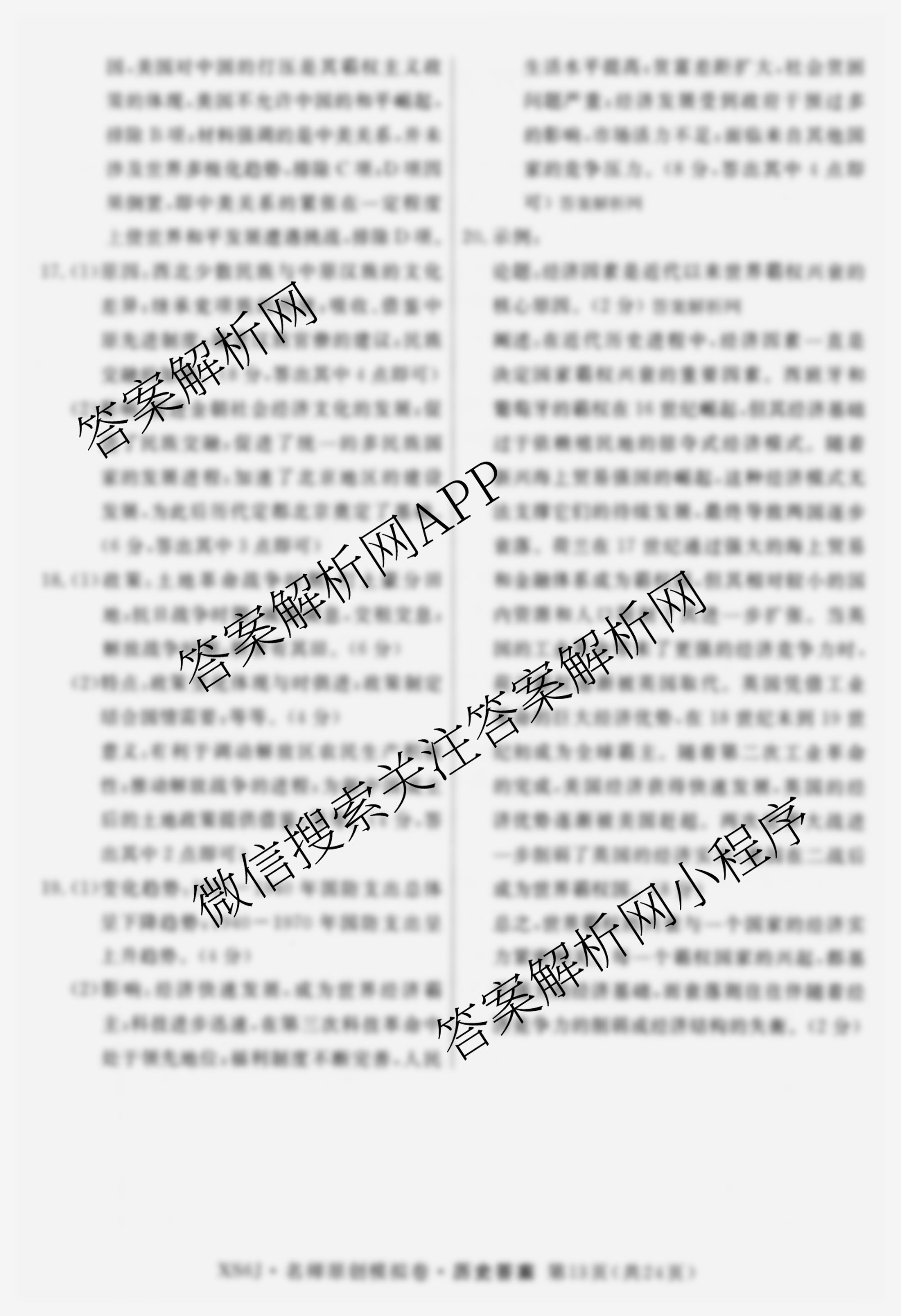 - 2026届[[高三]总复习名师原创模拟](九)9历史(XS6J)答案