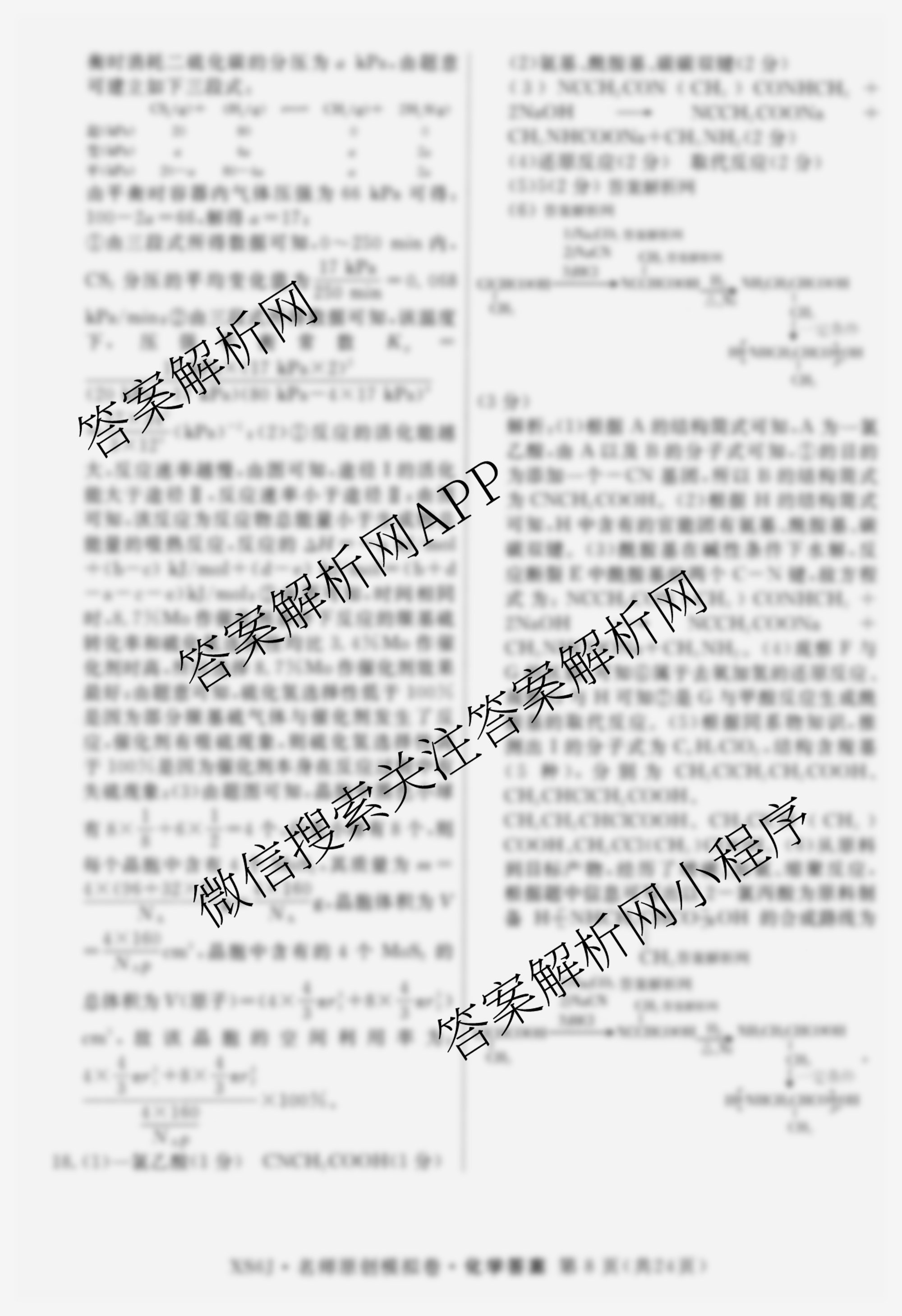 - 2026届[(高三)总复习名师原创模拟](八)8化学(XS6)答案