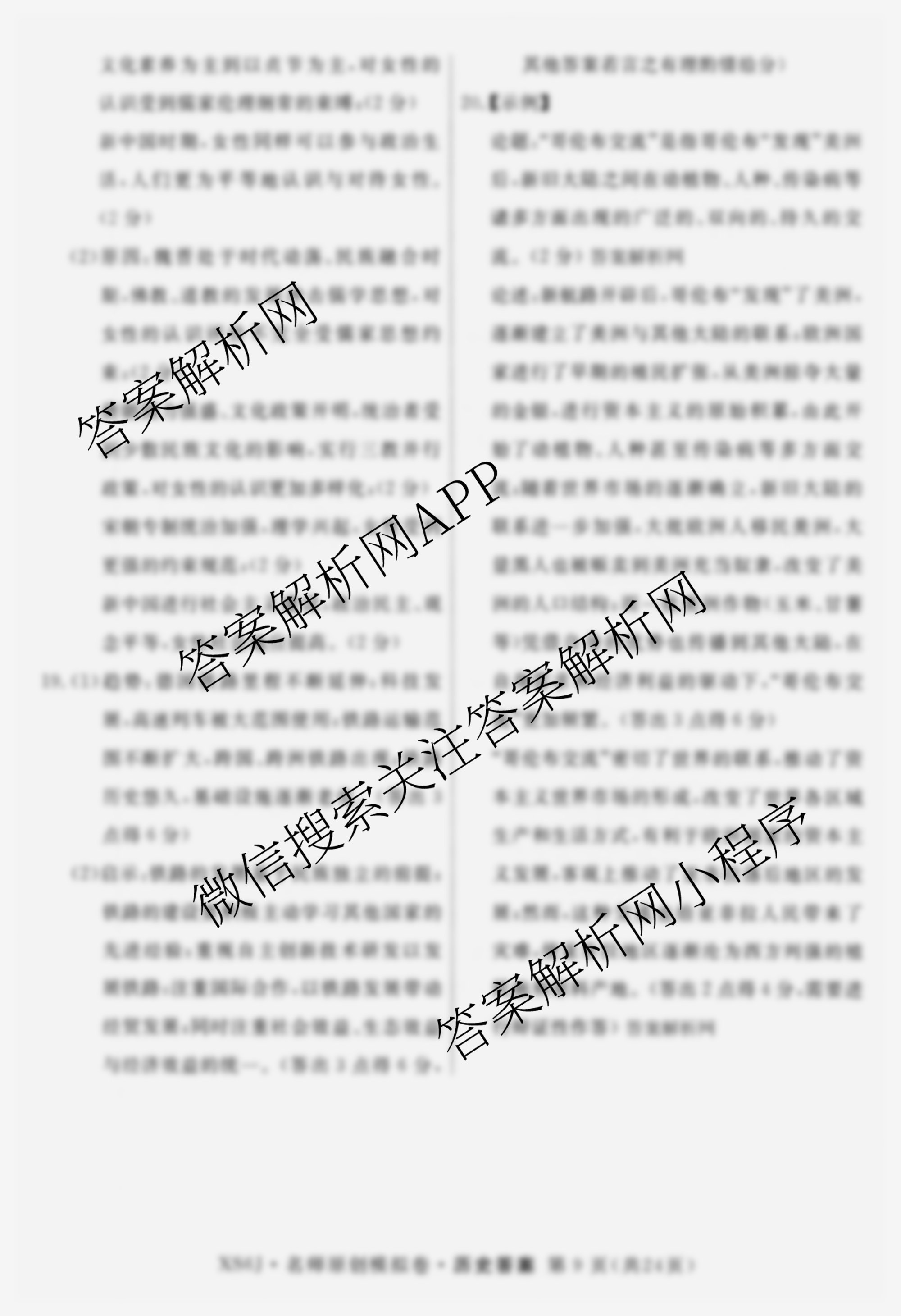 - 2026届[(高三)总复习·名师原创模拟](八)8历史(新S6J)答案