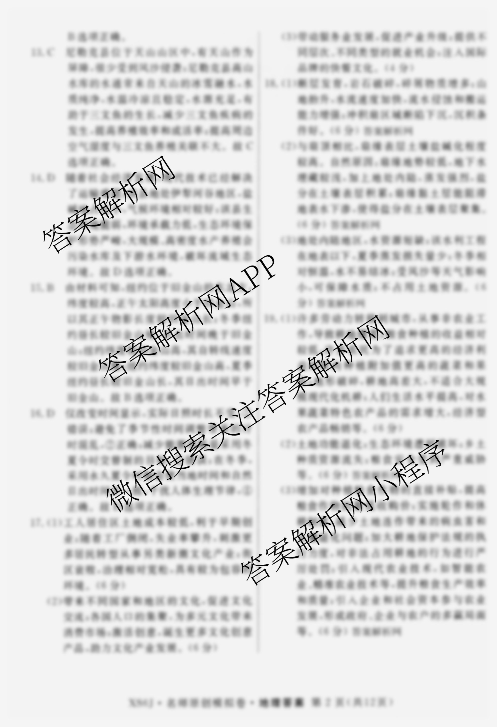 - (高三)2026届[总复习名师原创模拟](七)7地理(SX6)答案
