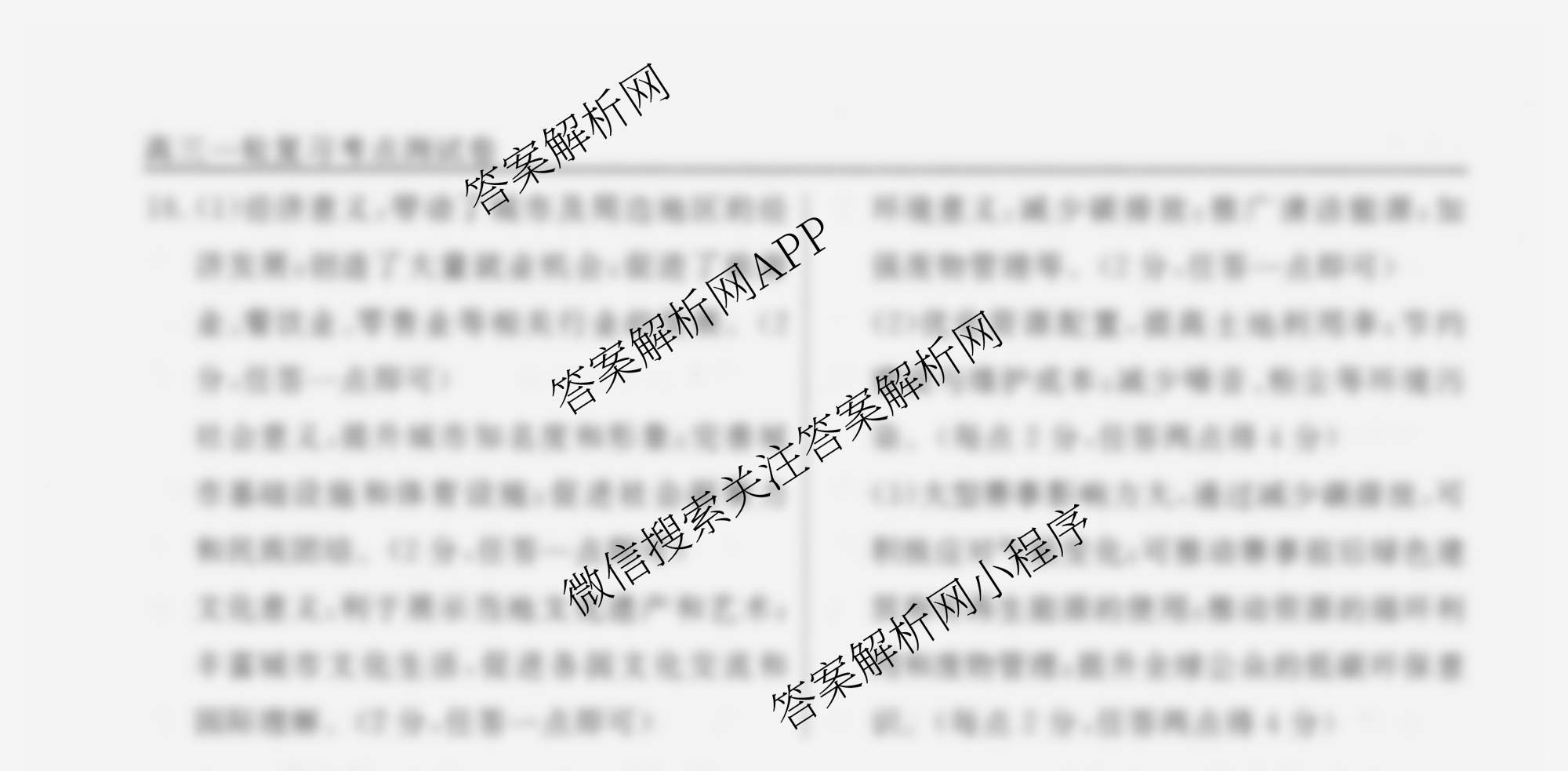 衡水名师卷2025-2026学年度高三一轮复习考点测试卷(二十九)29地理(40分钟空心菱形)答案