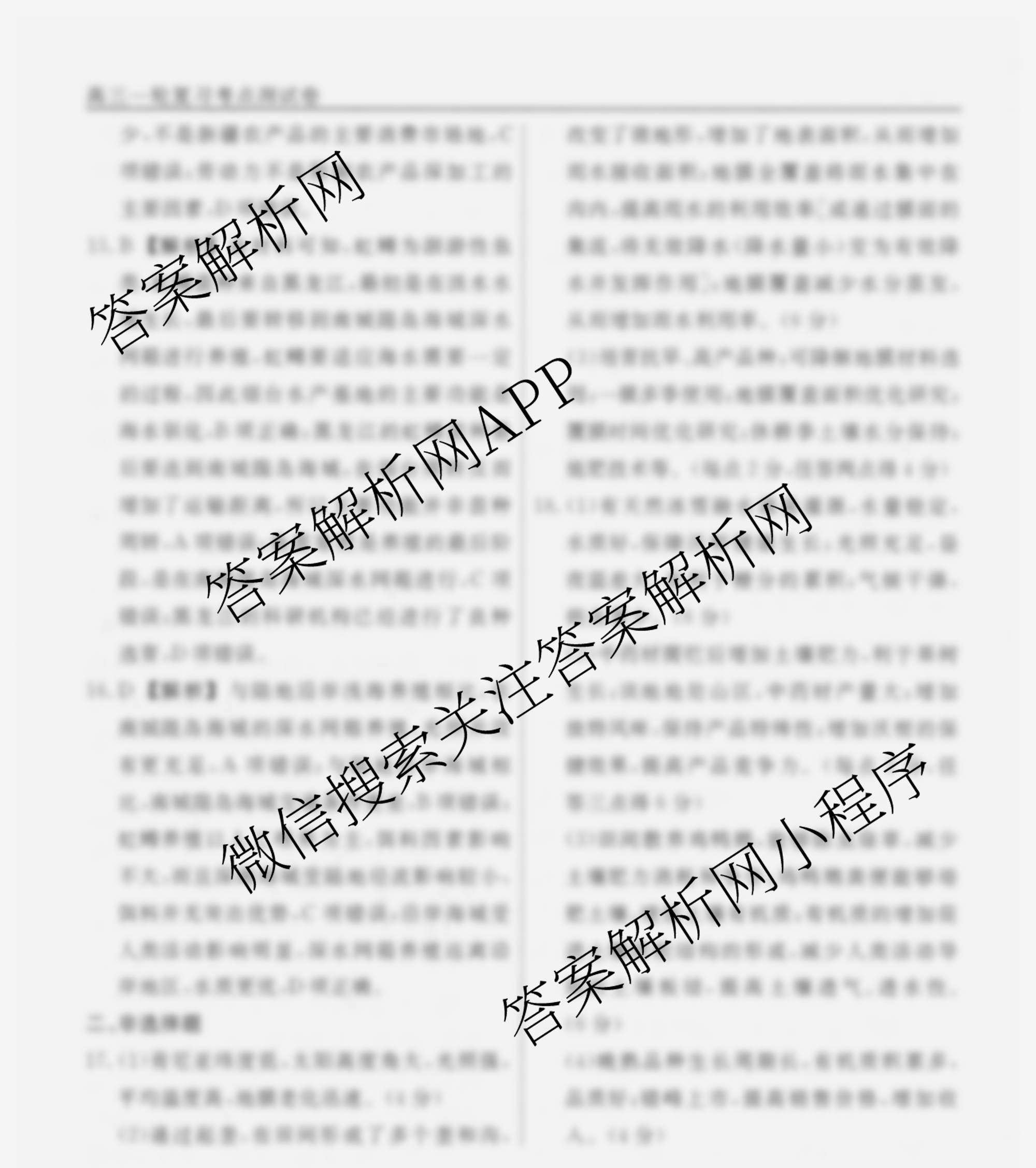 衡水名师卷2025-2026学年度高三一轮复习考点测试卷(十七)17地理(40分钟空心菱形)答案