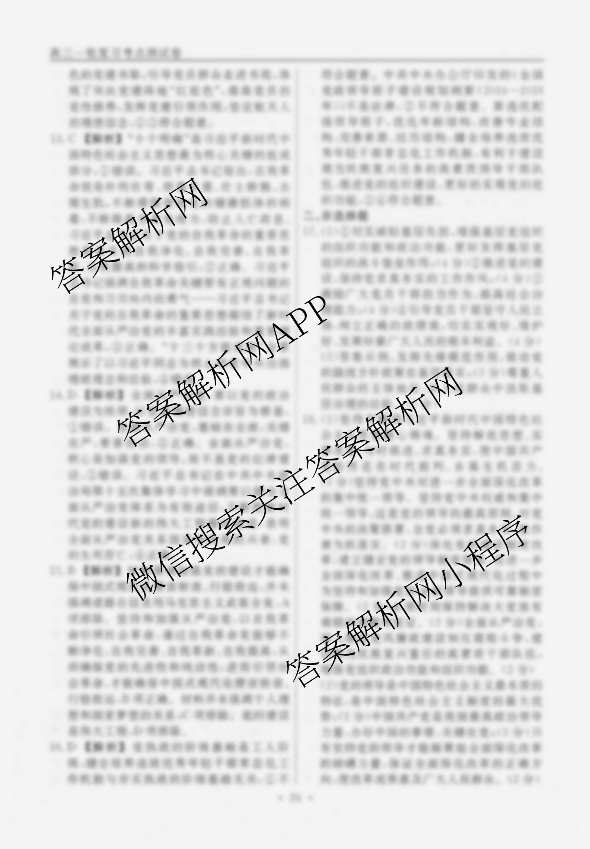 衡水名师卷2025-2026学年度高三一轮复习考点测试卷(十)10政治(40分钟双菱形)答案