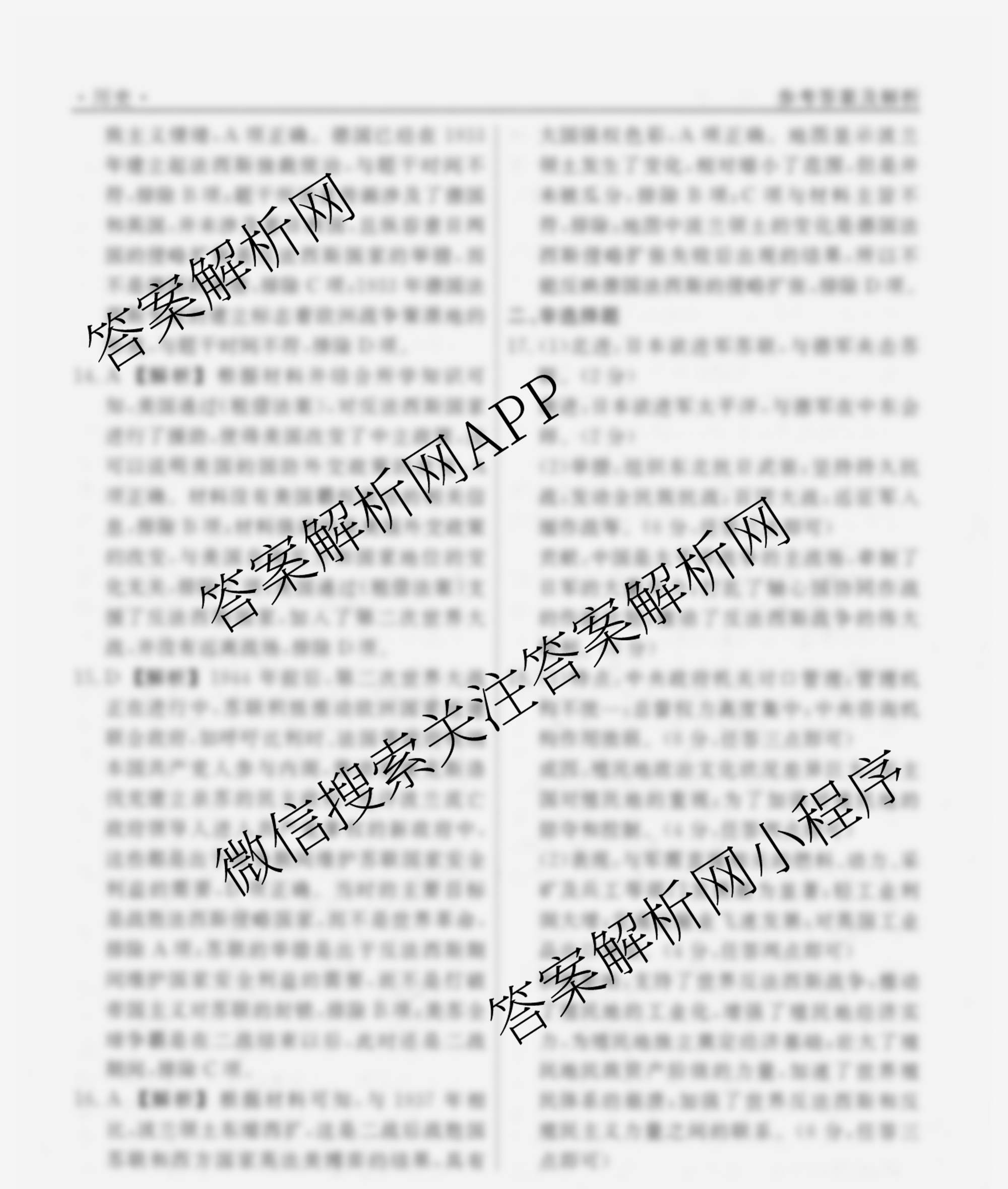 衡水名师卷2025-2026学年度高三一轮复习考点测试卷(二十四)24历史(40分钟空心菱形)答案