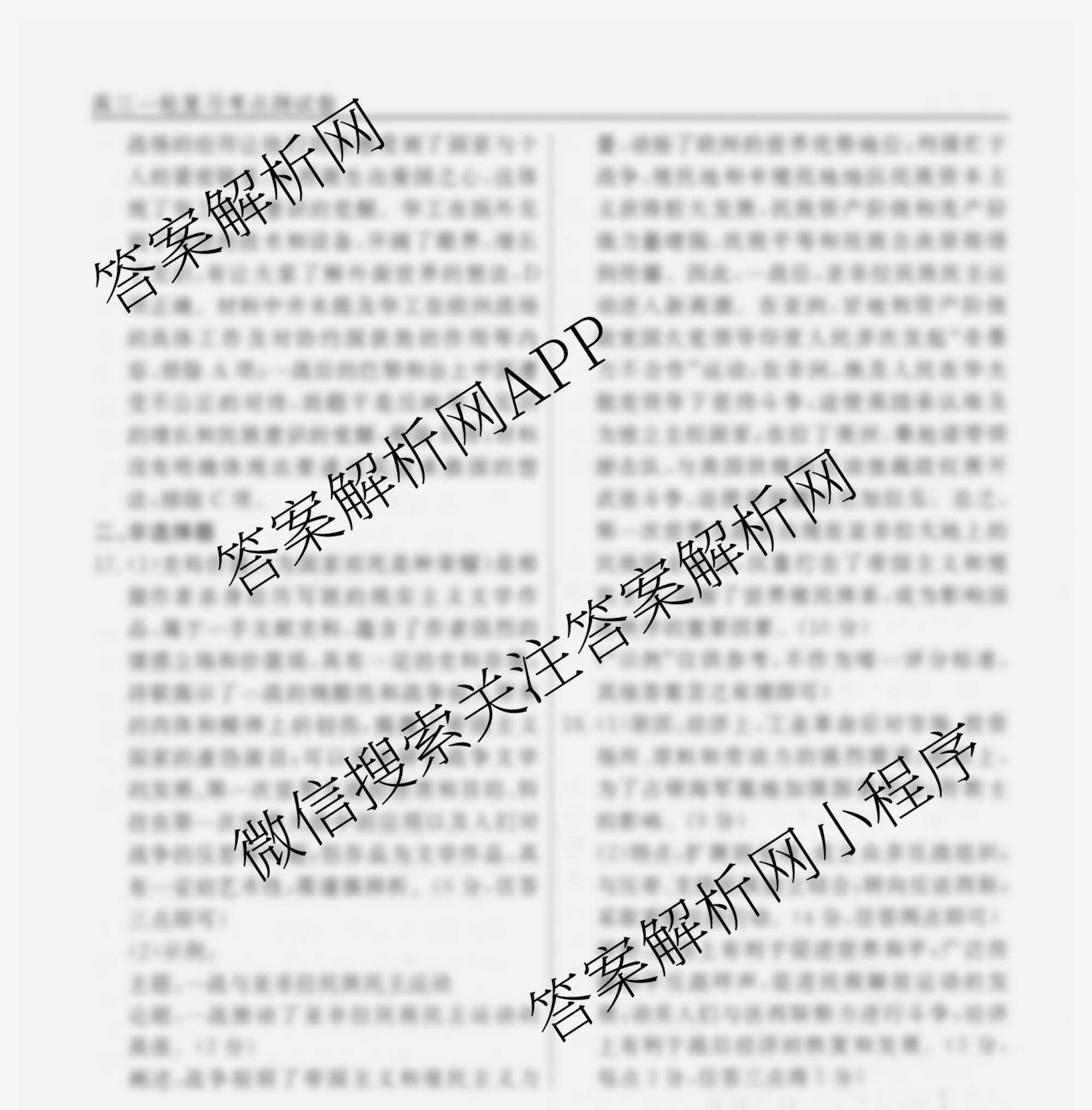 衡水名师卷2025-2026学年度高三一轮复习考点测试卷(二十二)22历史(40分钟空心菱形)答案