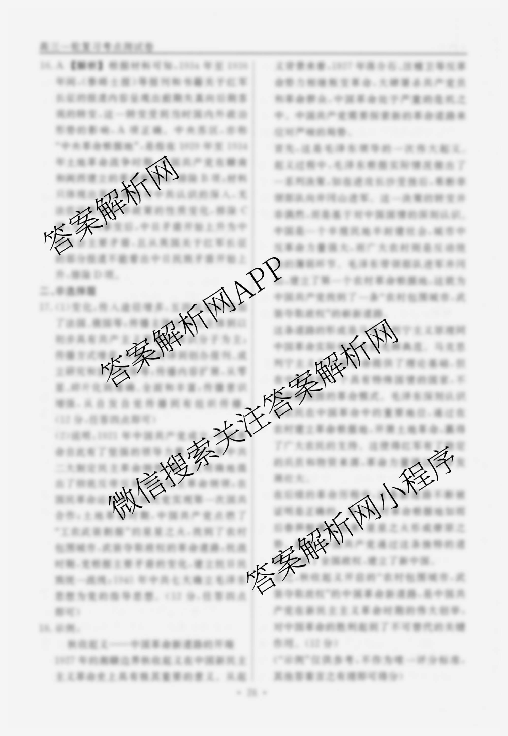 衡水名师卷2025-2026学年度高三一轮复习考点测试卷(十)10历史(40分钟空心菱形)答案