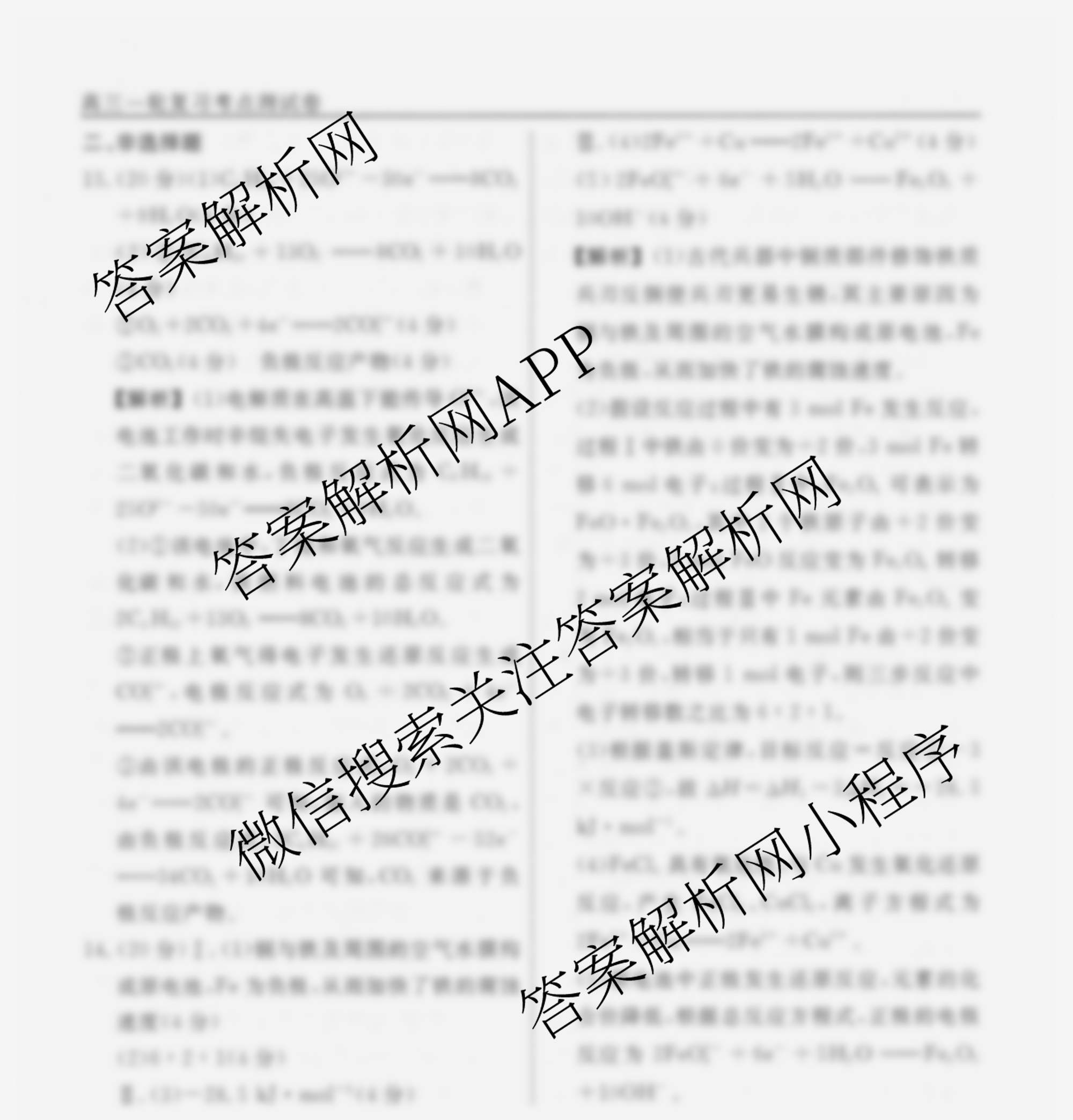 衡水名师卷2025-2026学年度高三一轮复习考点测试卷(十八)18化学(40分钟空心菱形)答案
