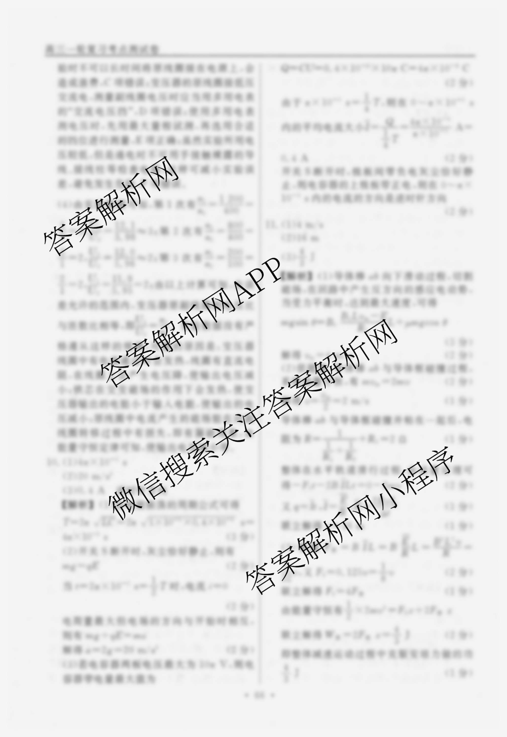 衡水名师卷2025-2026学年度高三一轮复习考点测试卷(二十七)27物理(40分钟空心菱形)答案