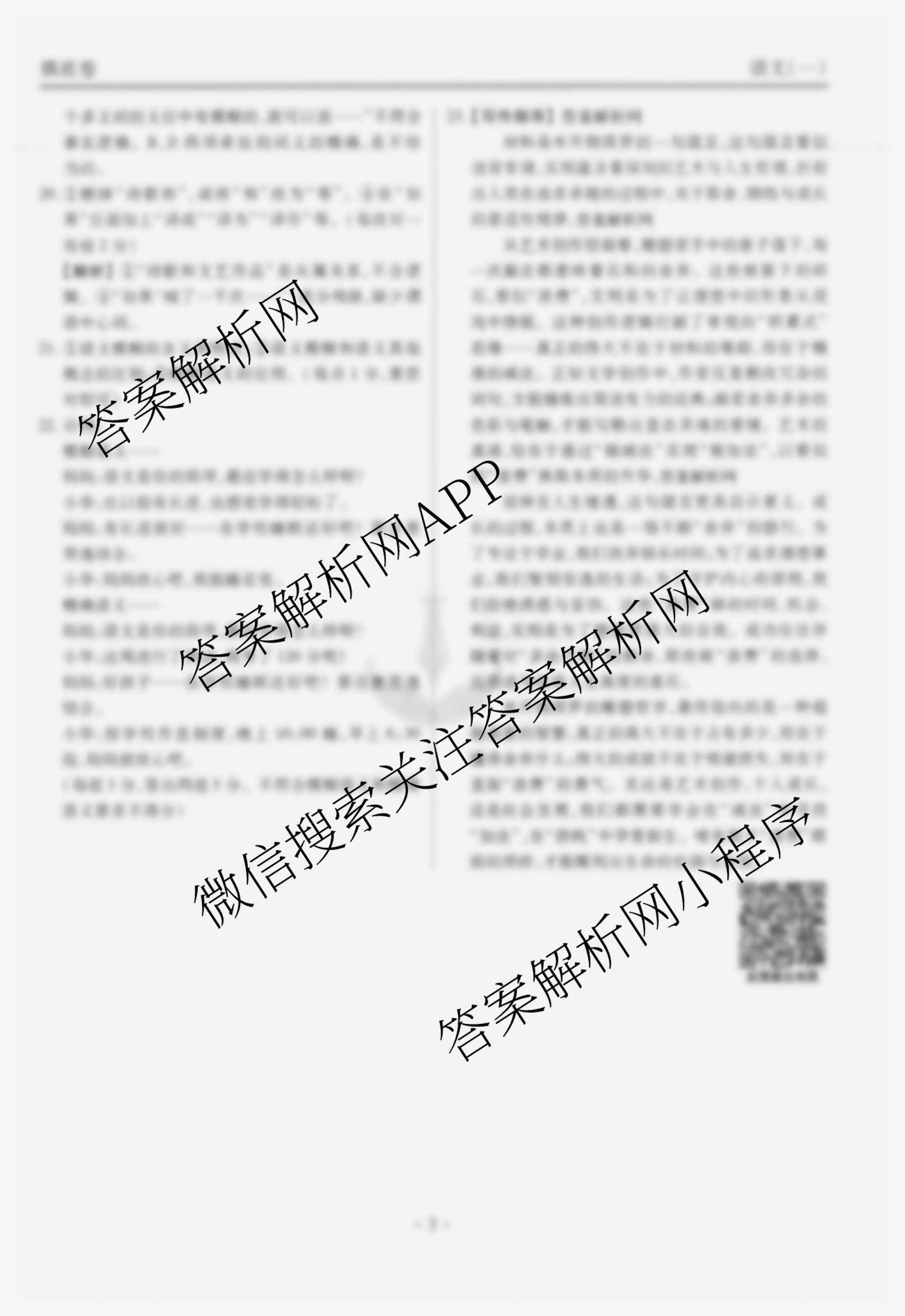 - [高三](衡水金卷先享题)摸底卷2025-2026学年度一轮复习摸底测试卷(一)1语文答案
