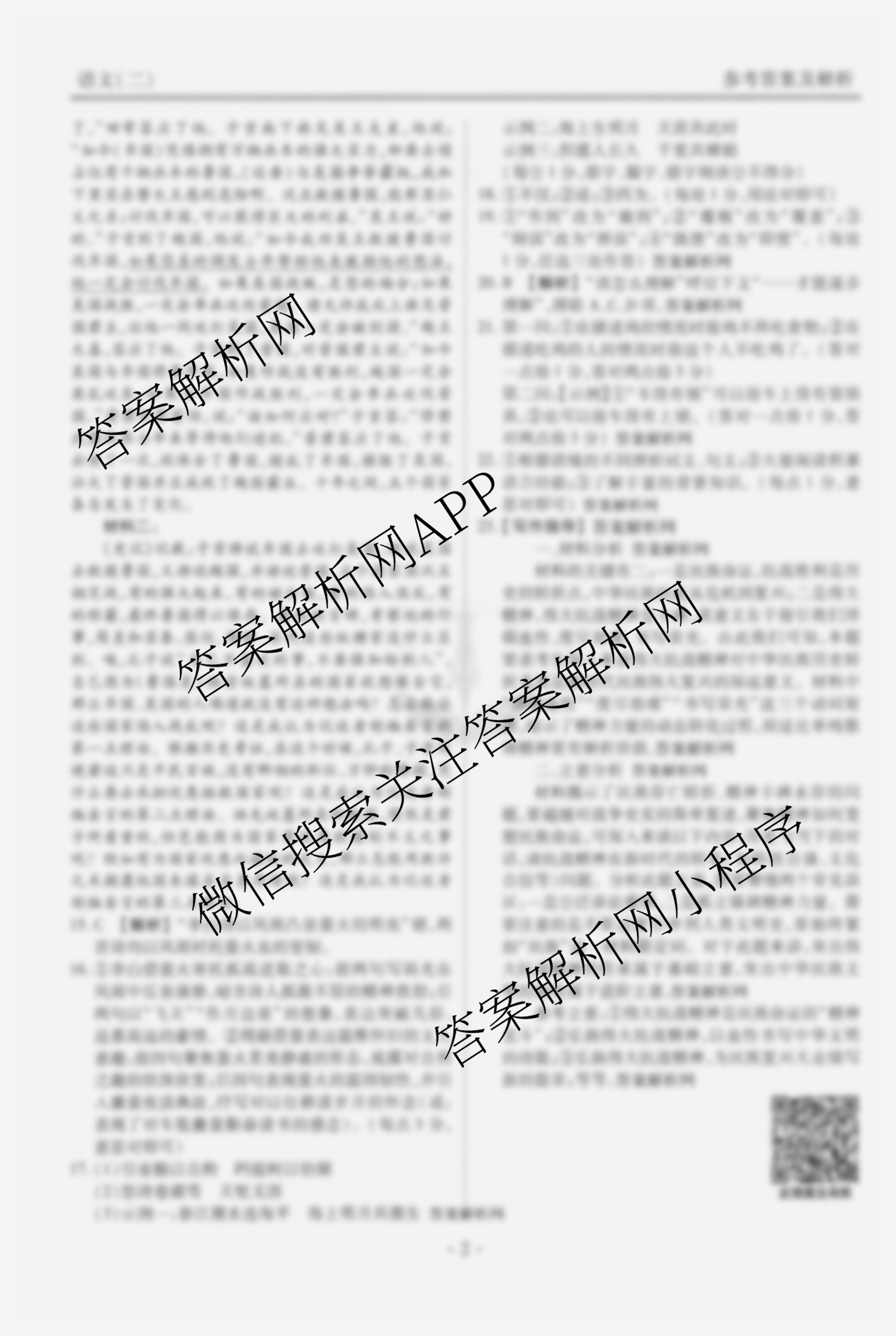 - [衡水金卷先享题]夯基卷 2026年普通高等学校招生全国统一考试模拟 语文(二)2答案