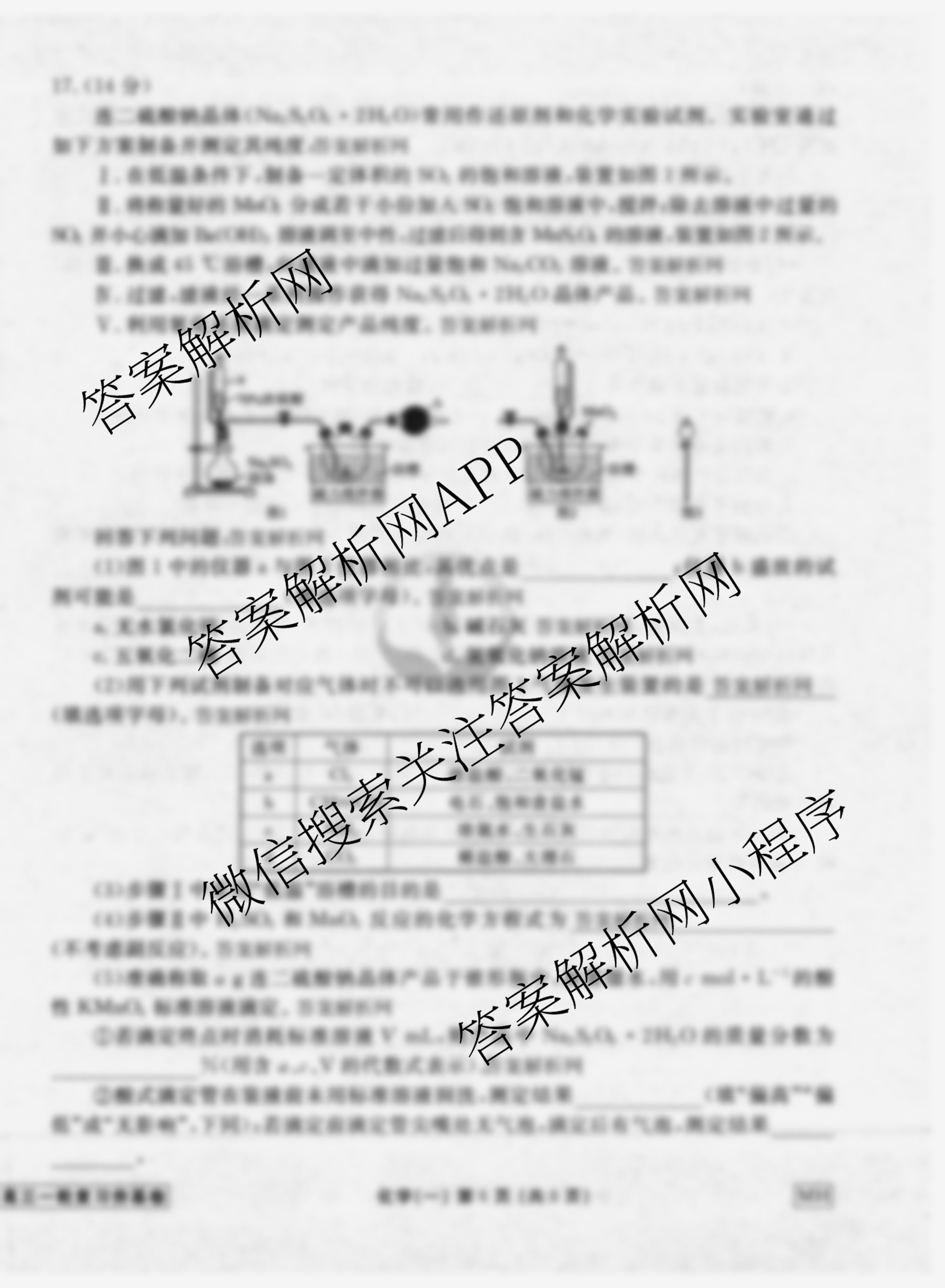 - (高三)衡水金卷先享题·夯基卷 2026年普通高中学业水平选择性考试模拟 化学(S)(一)1答案