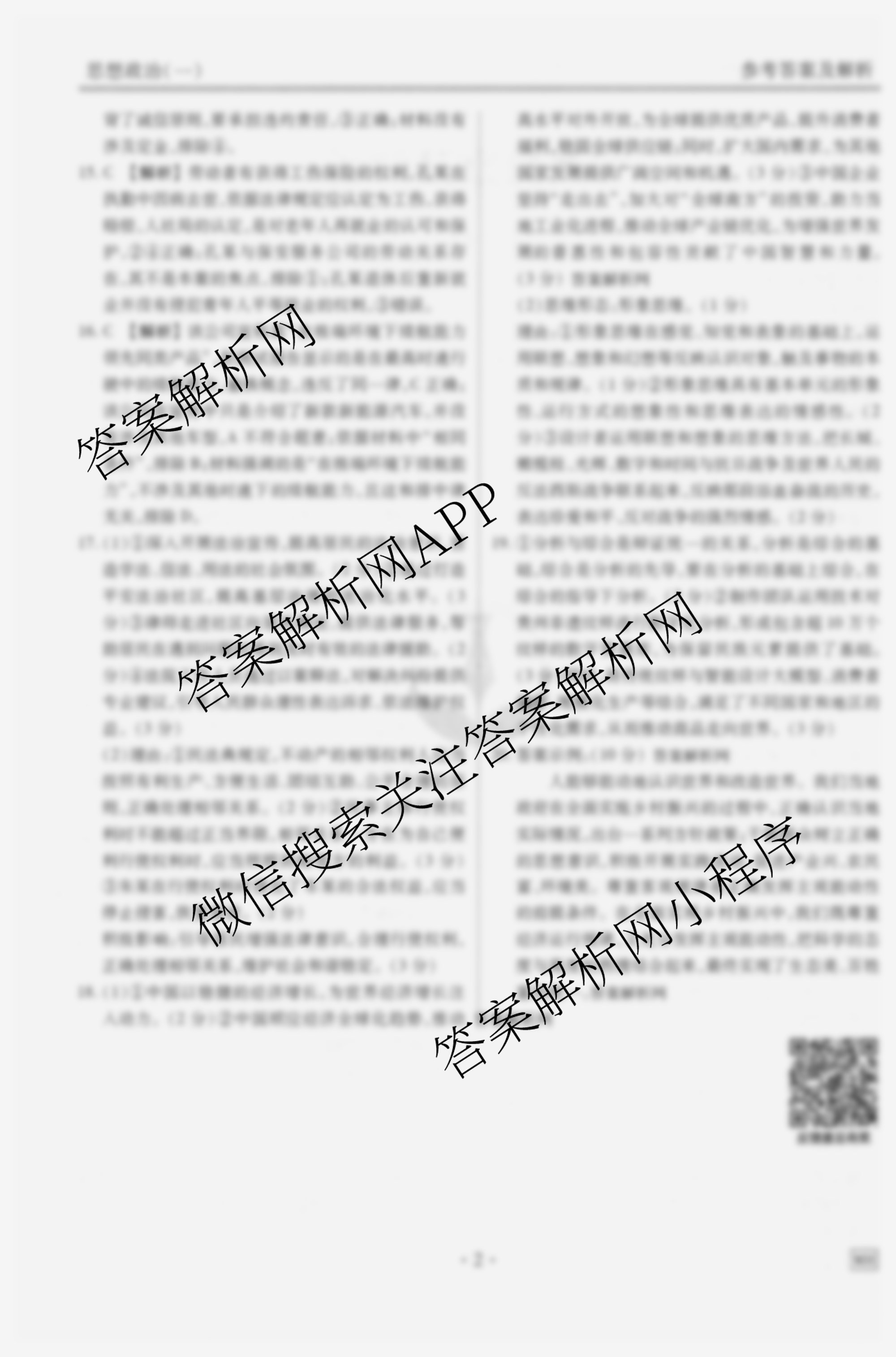 - (衡水金卷先享题)·夯基卷 2026年普通高中学业水平选择性考试模拟 政治(一)1答案