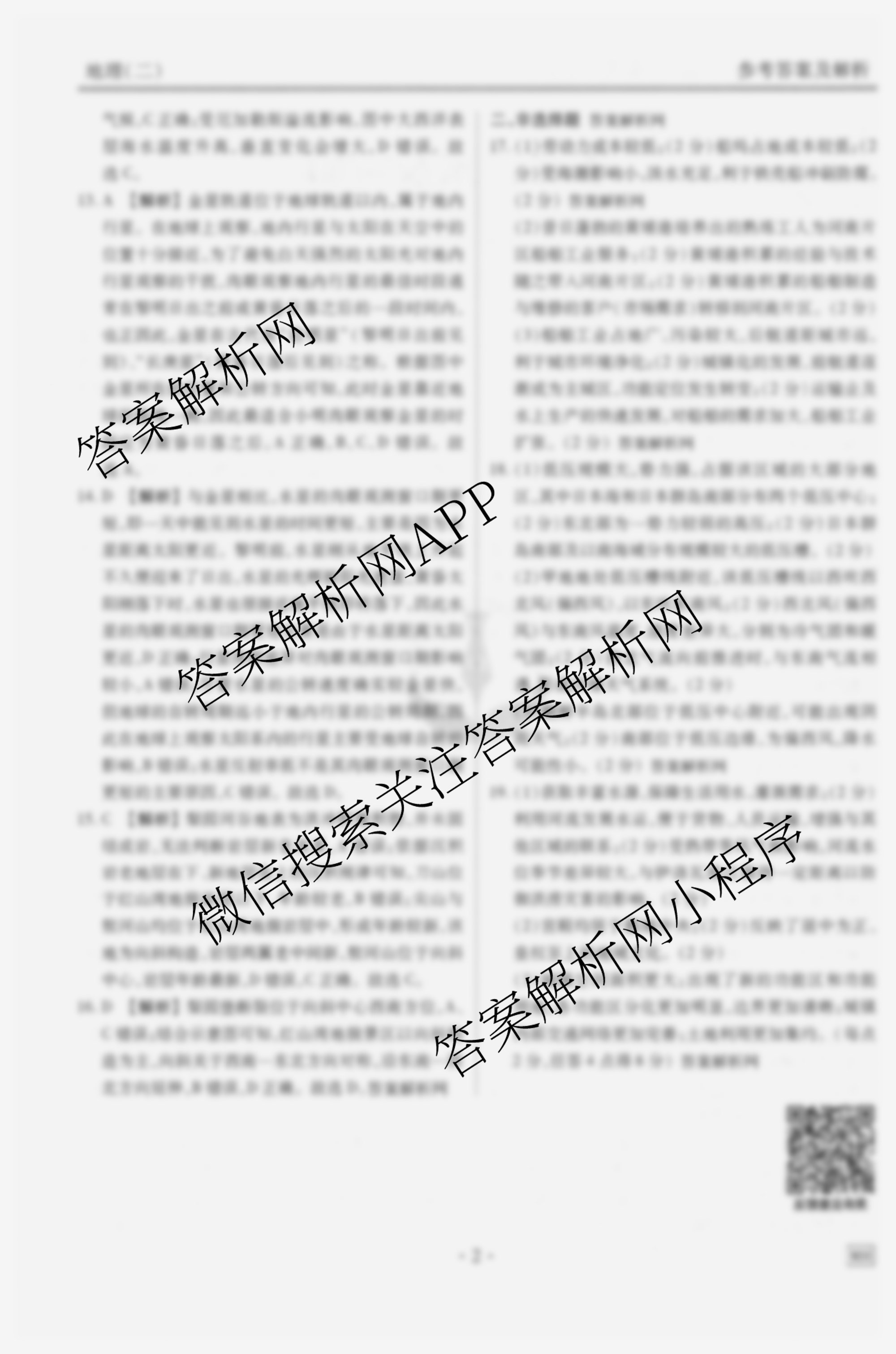 - [衡水金卷先享题]夯基卷 2026年普通高中学业水平选择性考试模拟 地理(二)2答案