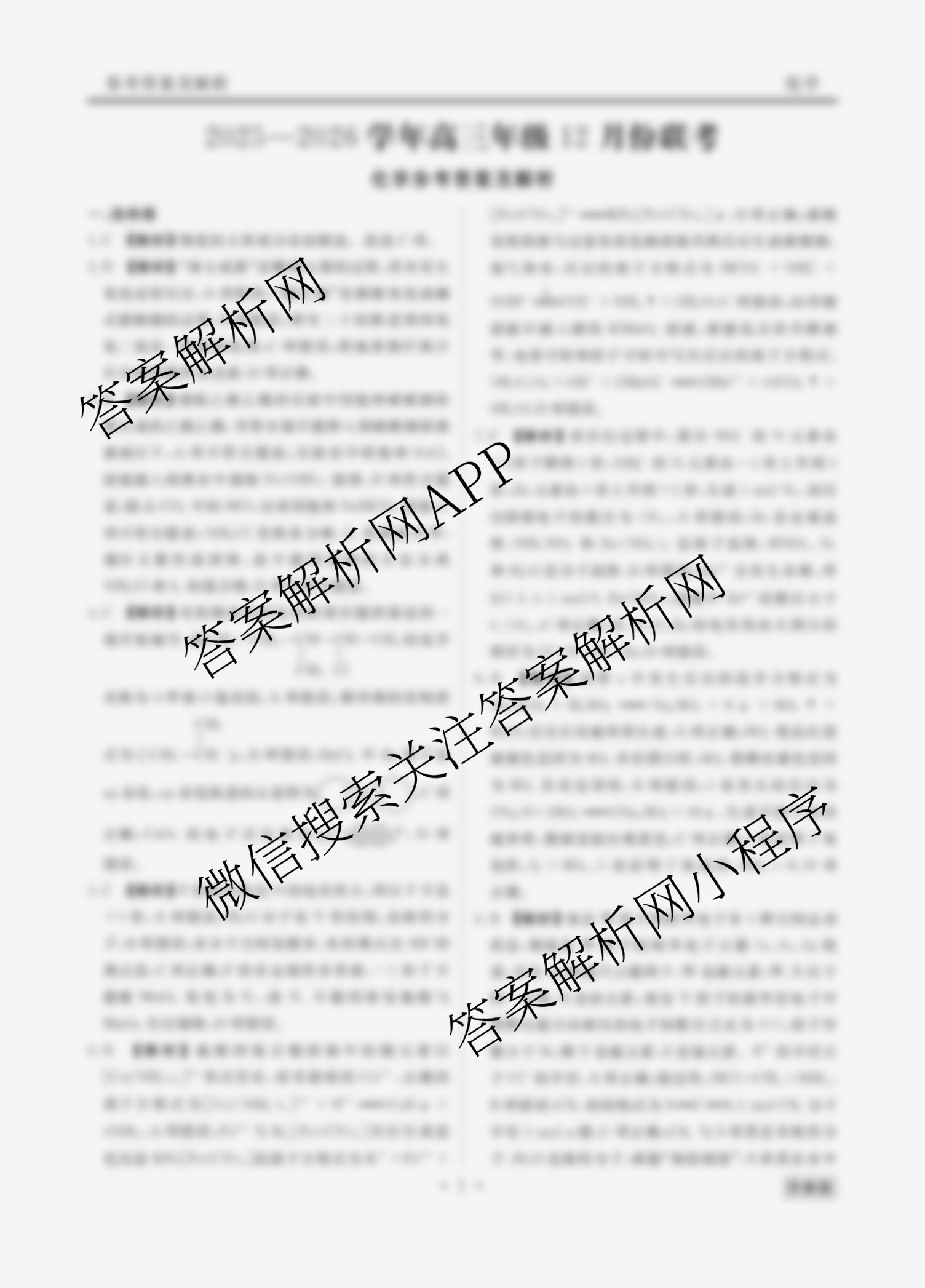 - 2025~2026[高三]衡水金卷河北省学年年级12月份联考化学(苏教版)答案