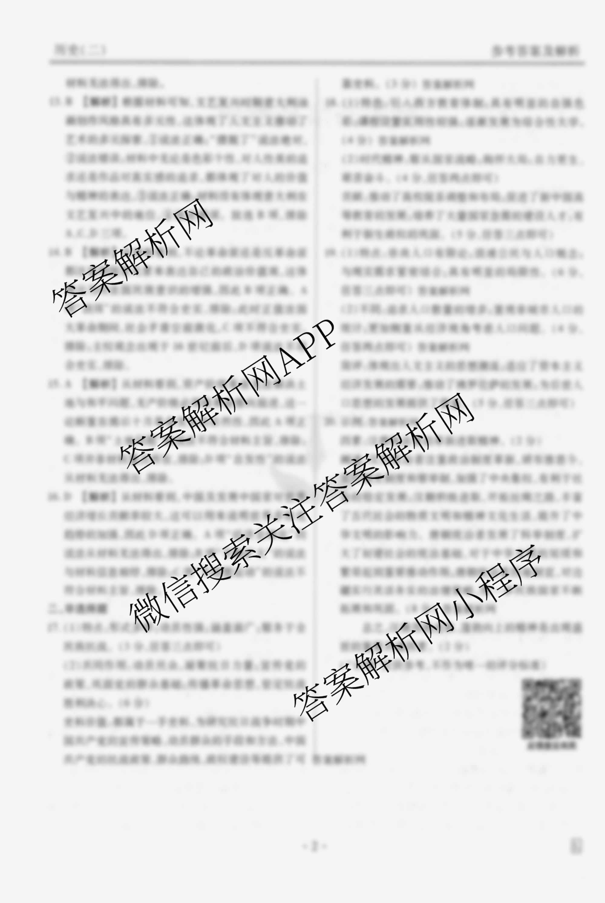 - (衡水金卷先享题)·调研卷·2026年普通高中学业水平选择性考试模拟试题(二)2历史(AH)答案