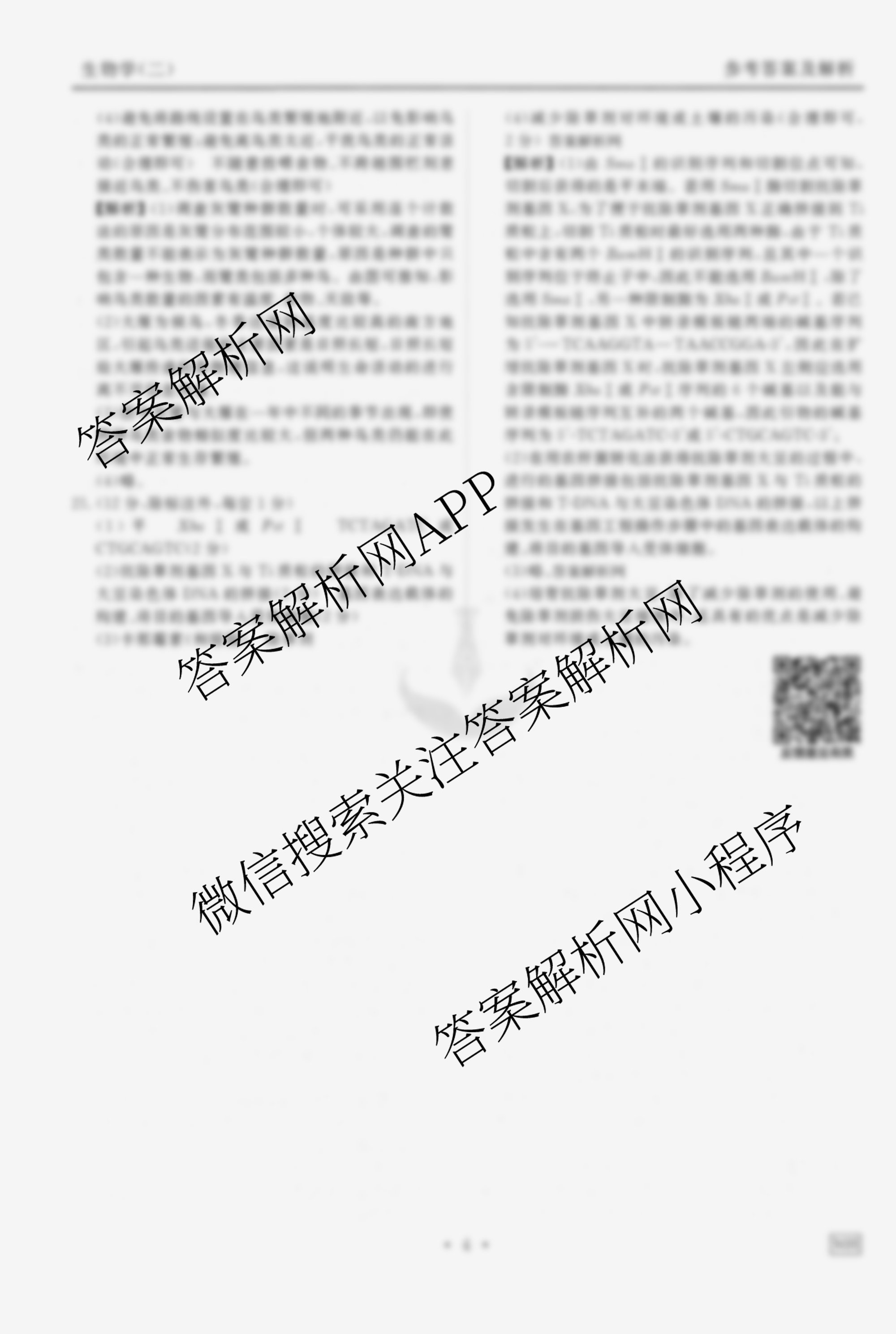衡水金卷先享题调研卷2026年普通高中学业水平选择性考试模拟(二)2生物(MH)答案